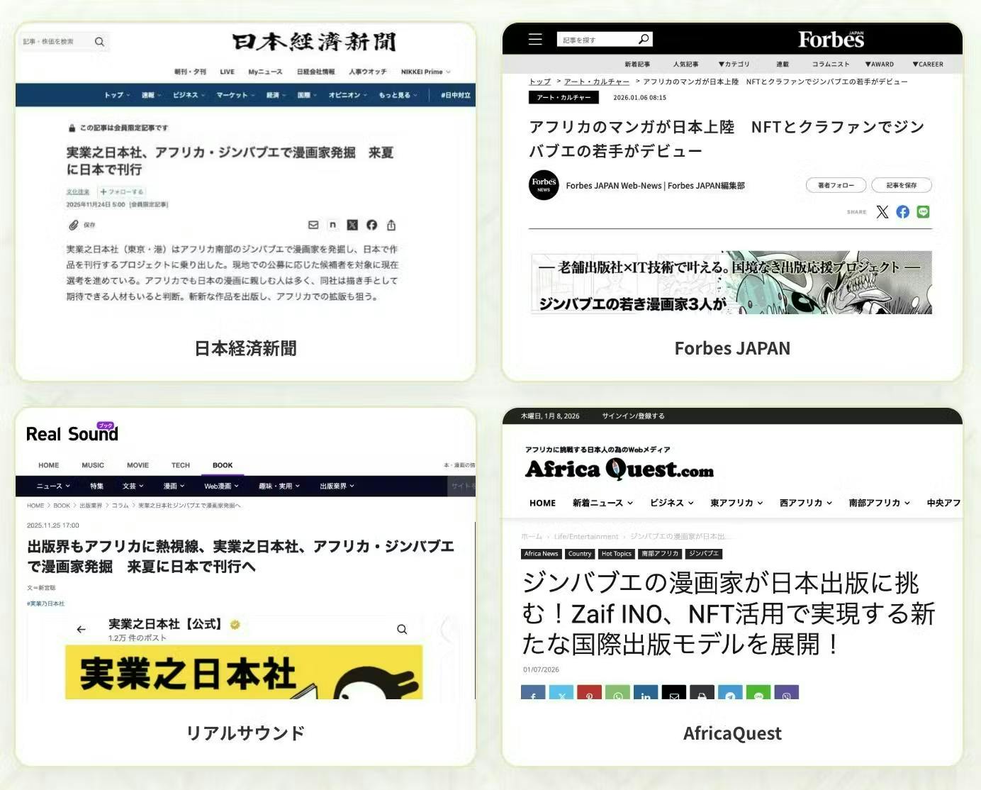 日経新聞、Forbes JAPAN、リアルサウンド、AfricaQuestなど、多数メディアで紹介されました!