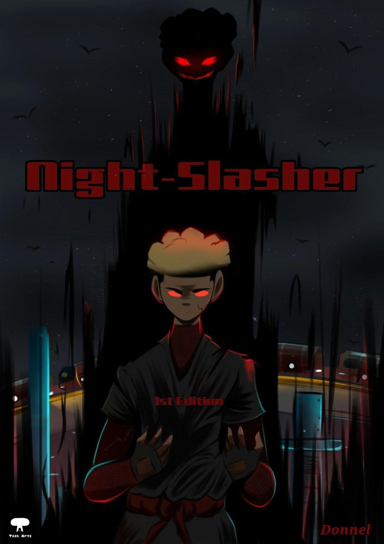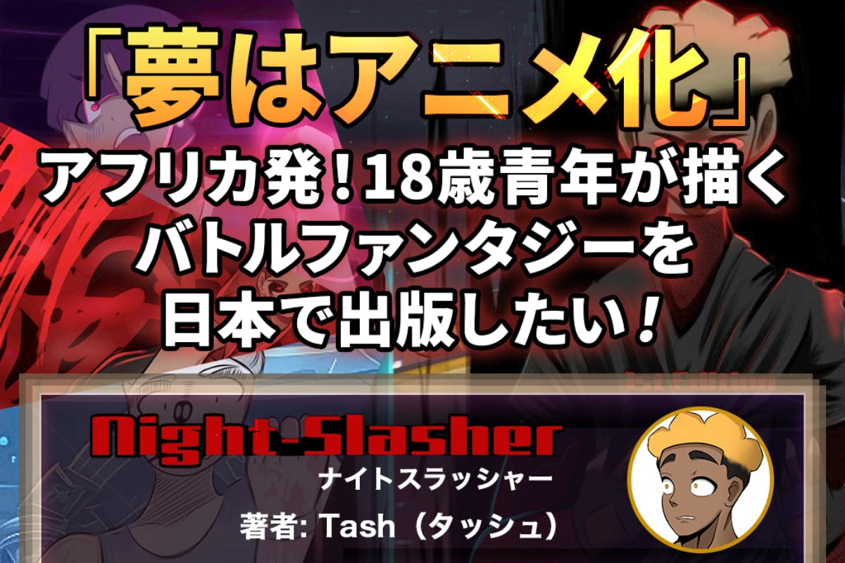 彼が自身の過酷な経験をインスピレーションに変え、 憧れのアニメのスタイルで描き出したのが、 この『Nightslasher(ナイトスラッシャー)』です。