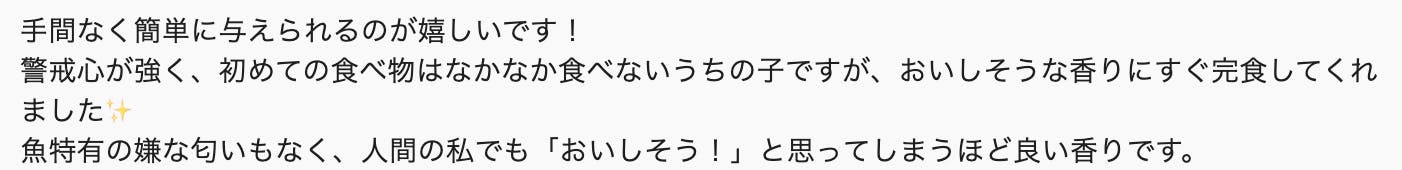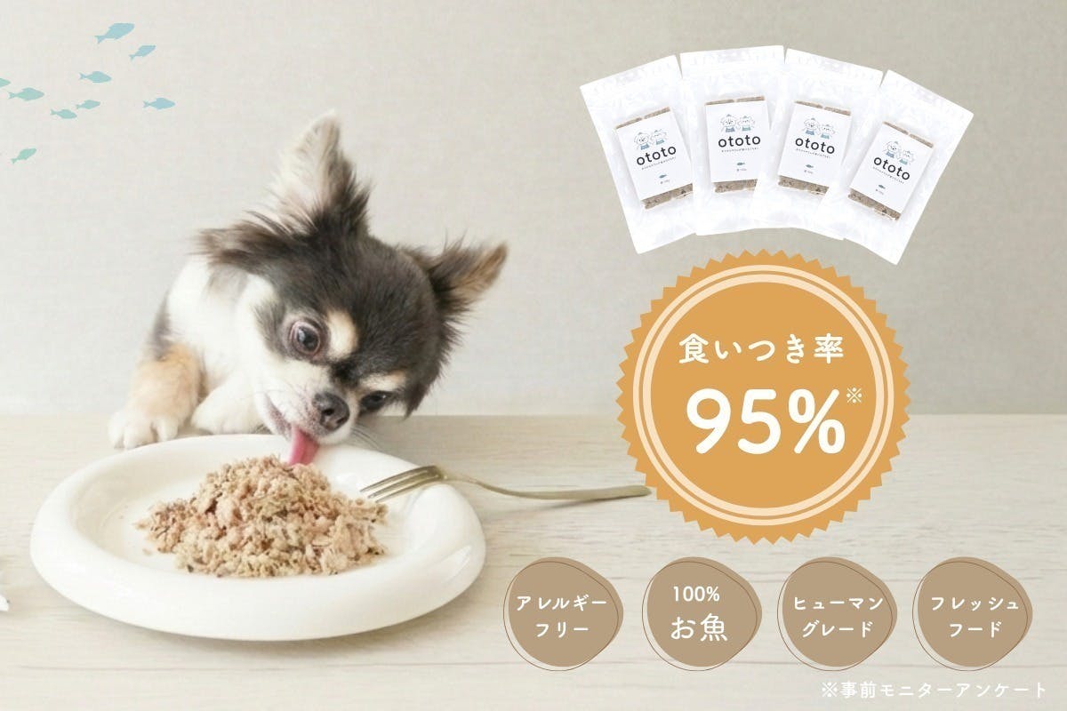 お肉や乳製品に対してアレルギーの不安がある子でも、原料にカツオだけしか使っていないototoなら、それらに代わる安心なたんぱく源として取り入れていただけます。一般的にお魚はアレルギーの発生率が低いとされている原料です。【「食いつき」を改善したい時に】