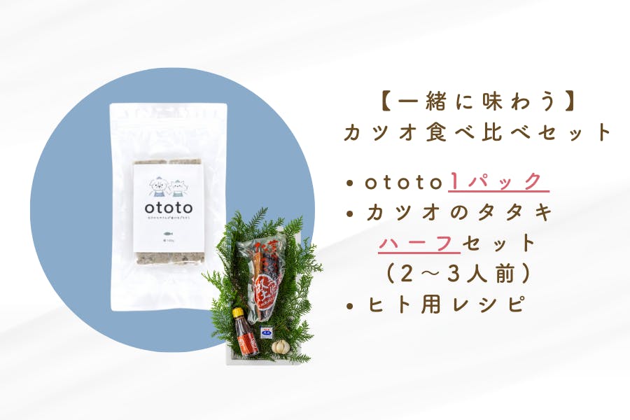 ototoと同じカツオを使った魚屋自慢の「カツオのタタキ 」(人用)とセットもあります。