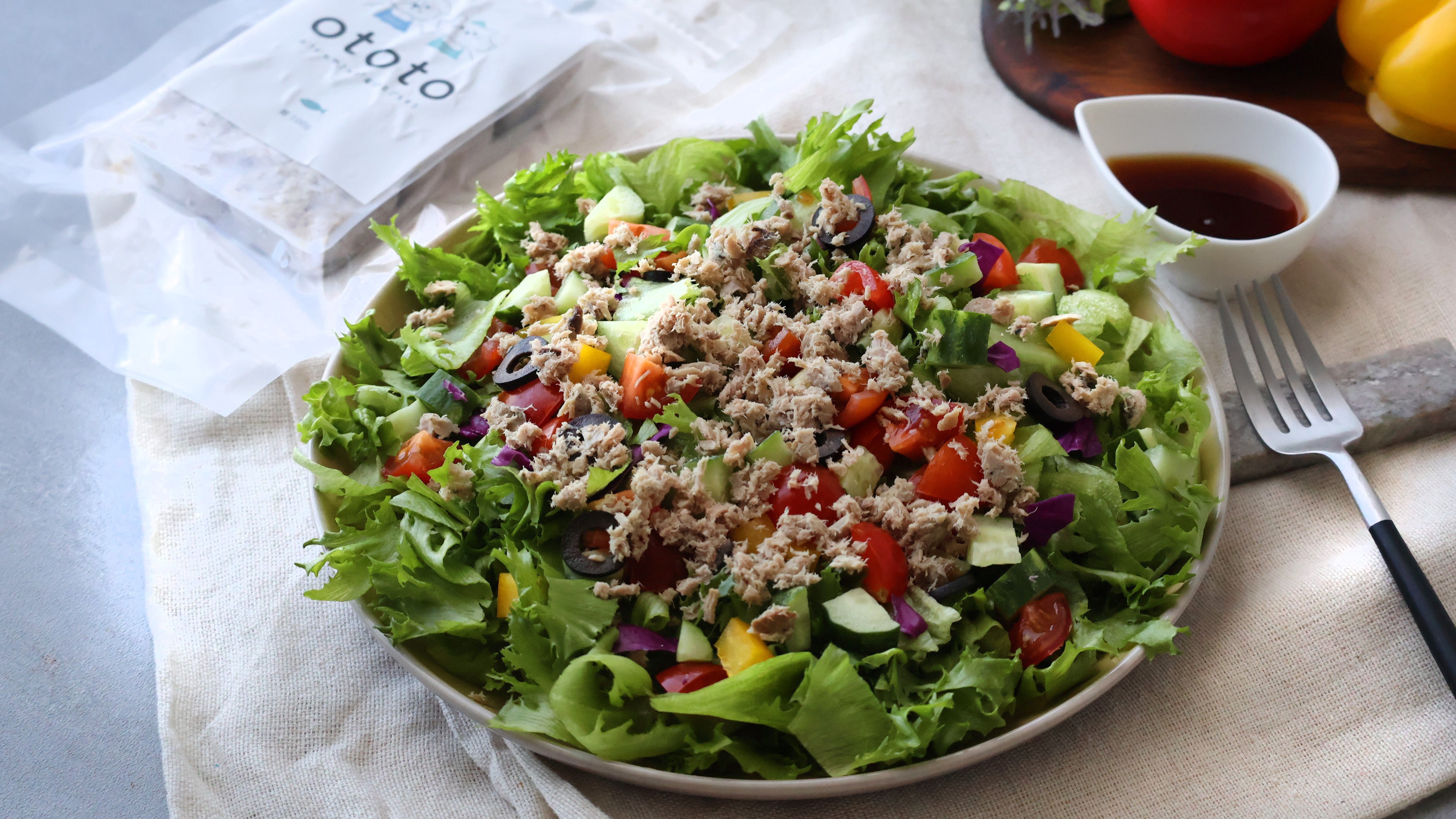 サラダに活用した例。サラダの上にototoをトッピングしています。