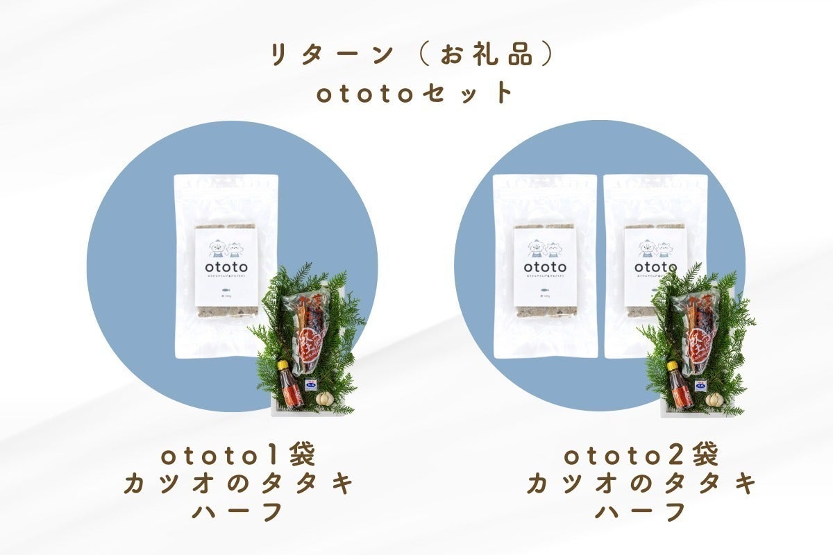 ototoと同じカツオを使った魚屋自慢の「カツオのタタキ 」(人用)とセットもあります。
