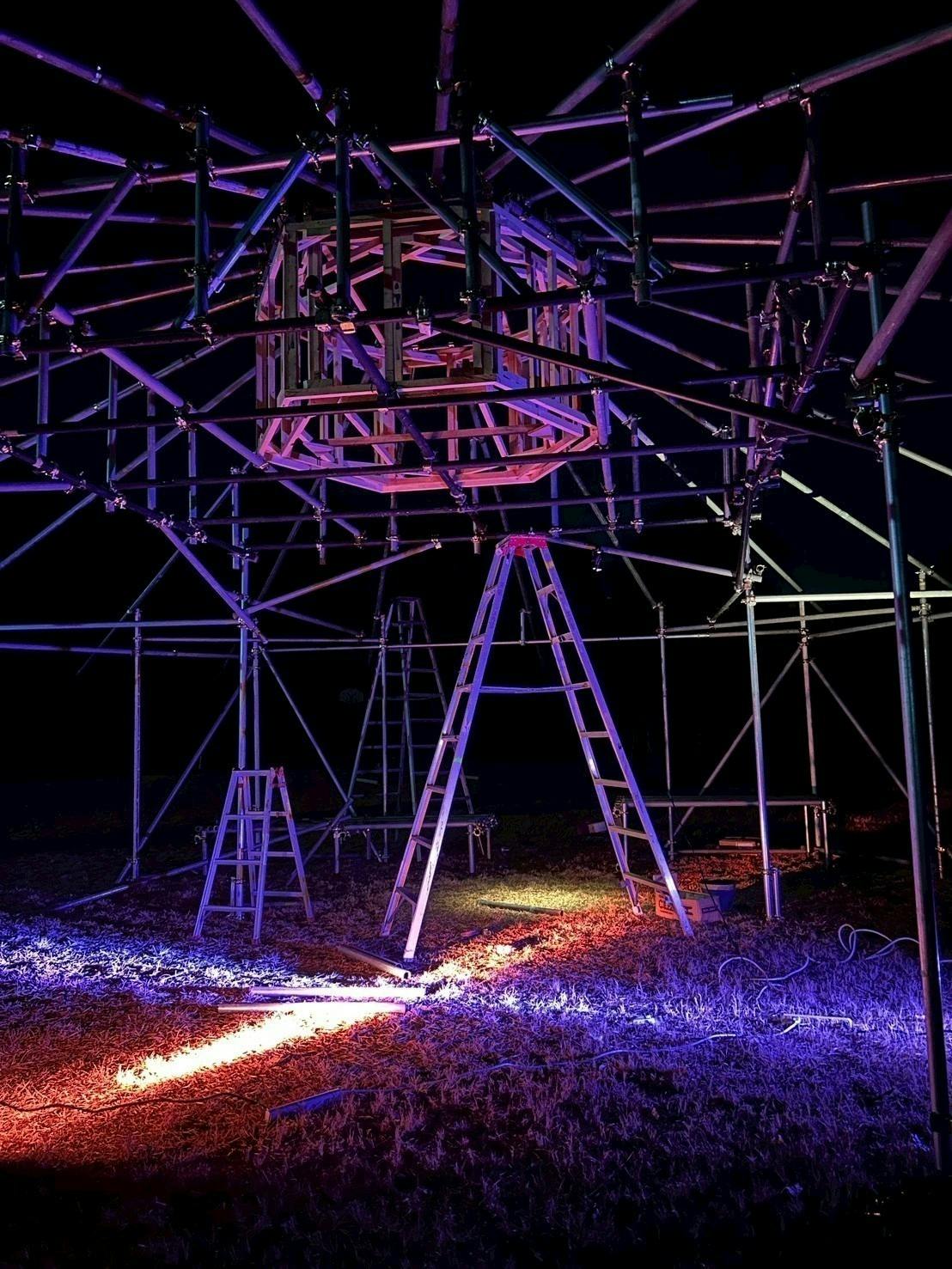 325本、総延長にして東京タワー約2本分にあたる単管パイプを組み上げ、