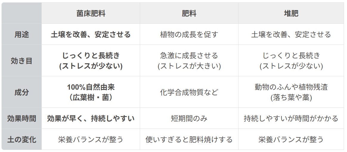 肥料といっても植物に直接影響するわけではなく、健康で良い土を作るための堆肥に近い用途になります。