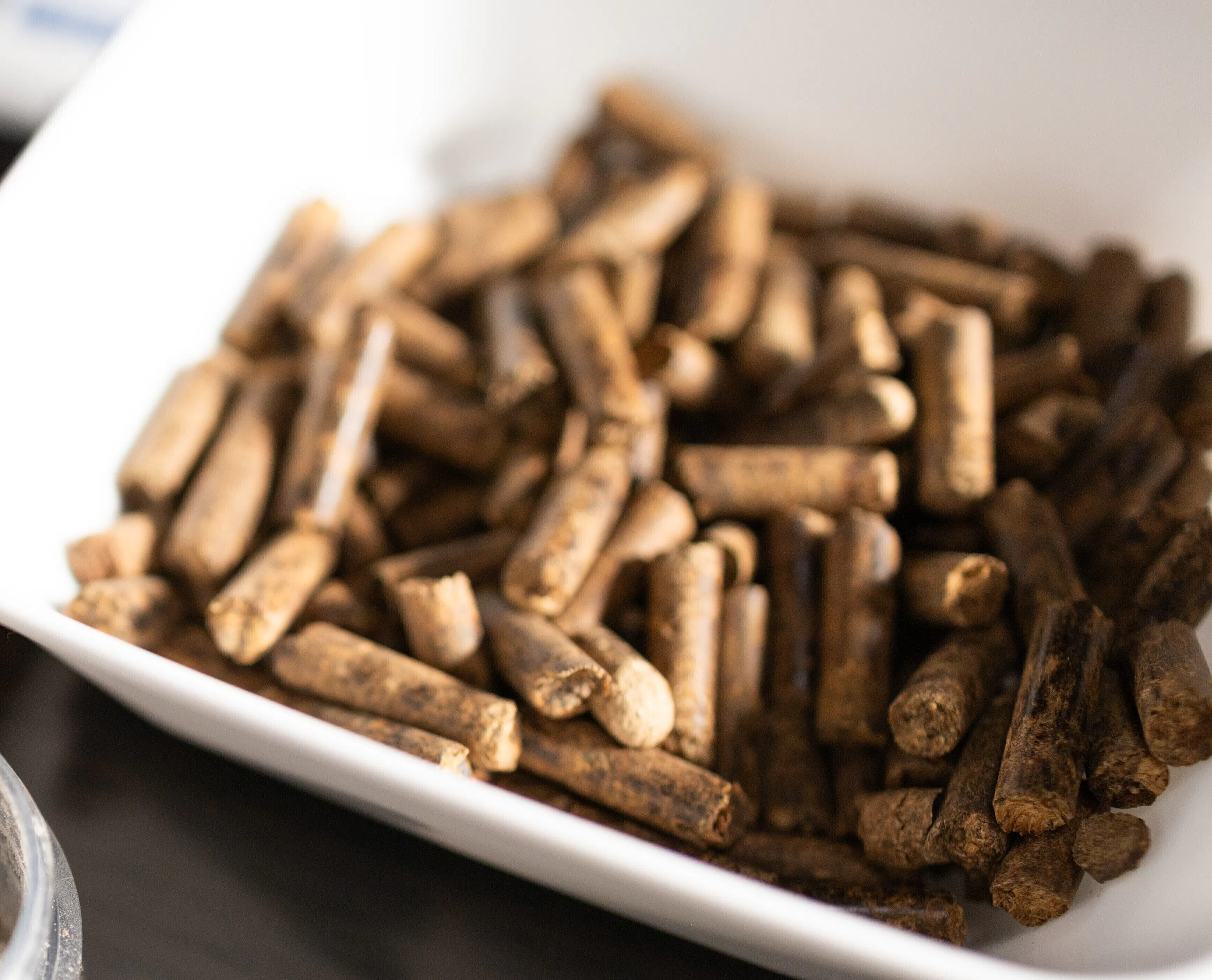 現在は主にバイオマス発電やペレットストーブ用の燃料としての用途で、「火力が高い」「こんなペレット見たことない!」と好評です。