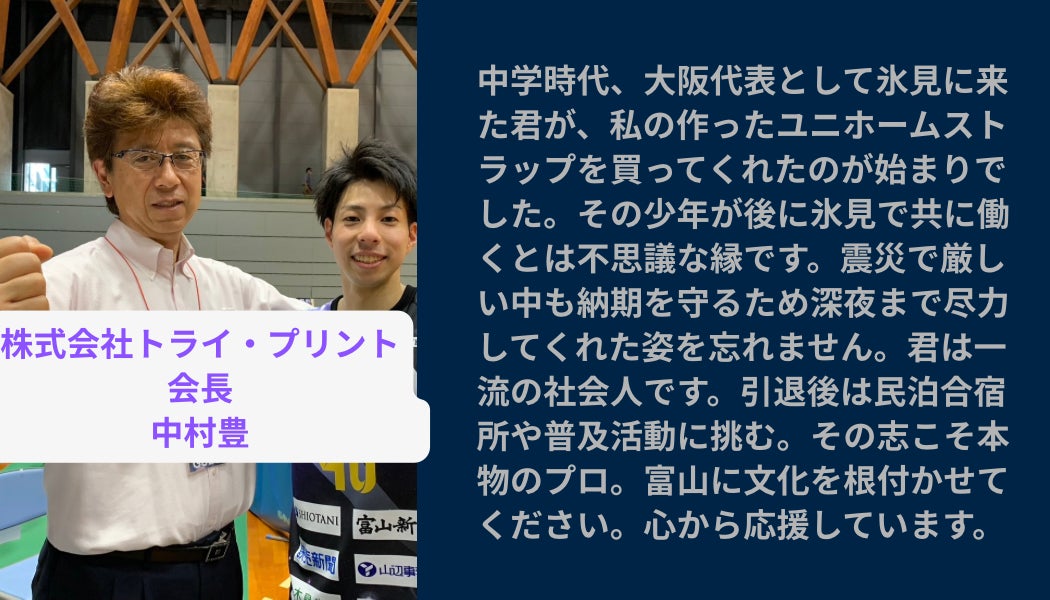 このプロジェクトは、ただ宿をつくるためのものではありません。子どもたちが本気で挑戦し、仲間と笑い、時には悔しさを分かち合いながら成長できる場所をつくる挑戦です。スポーツを通して学んできた「人とのつながり」「努力することの尊さ」「仲間と過ごす時間の価値」を、次の世代へつないでいきたいと考えています。古民家を再生し、子どもたちの声が響く合宿所へ。氷見の自然の中で汗を流し、食べ、語り合い、またここに帰ってきたいと思える場所をつくりたい。その想いでこのプロジェクトを立ち上げました。この場所で過ごした時間が、子どもたちの人生のどこかで「頑張る力」や「仲間を信じる力」につながってくれたら、これ以上うれしいことはありません。そしていつか大人になった彼らが、今度は次の世代を連れてこの場所に帰ってきてくれる。そんな温かい循環が生まれる場所を、氷見につくりたいと本気で思っています。この挑戦は、私一人では実現できません。皆さまの応援があってこそ形になります。どうかこの想いに共感していただけましたら、応援していただけると嬉しいです。そしていつか、この場所で皆さまとお会いできる日を楽しみにしています。