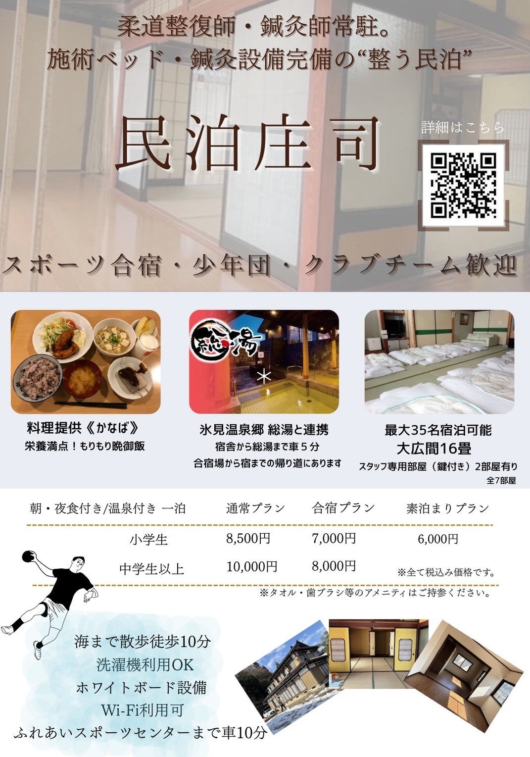 はじめまして、ハンドボール歴20年!現在は、男子プロハンドボールチーム「富山ドリームス」で選手として活動しています。庄司清志と申します。2026年5月に現役を引退し、新たな挑戦として富山県氷見市で、空き家を活用した「スポーツ×古民家×地域」を目指した民泊事業をはじめます!