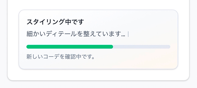 生成中は、画面上のステータスバーで進み具合がわかるので、待ち時間も安心です。いまどの段階なのかが見えるため、完成までの流れがわかりやすくなっています。