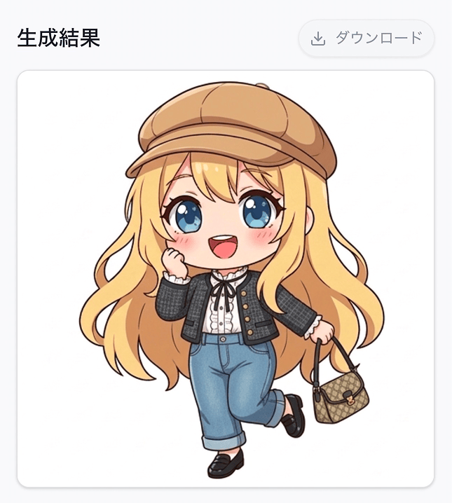 今回は、ちびキャラを選んで試してみました。小さくてかわいいキャラクターにも、しっかりスタイルが反映されるので、仕上がりを見る前からわくわくします。