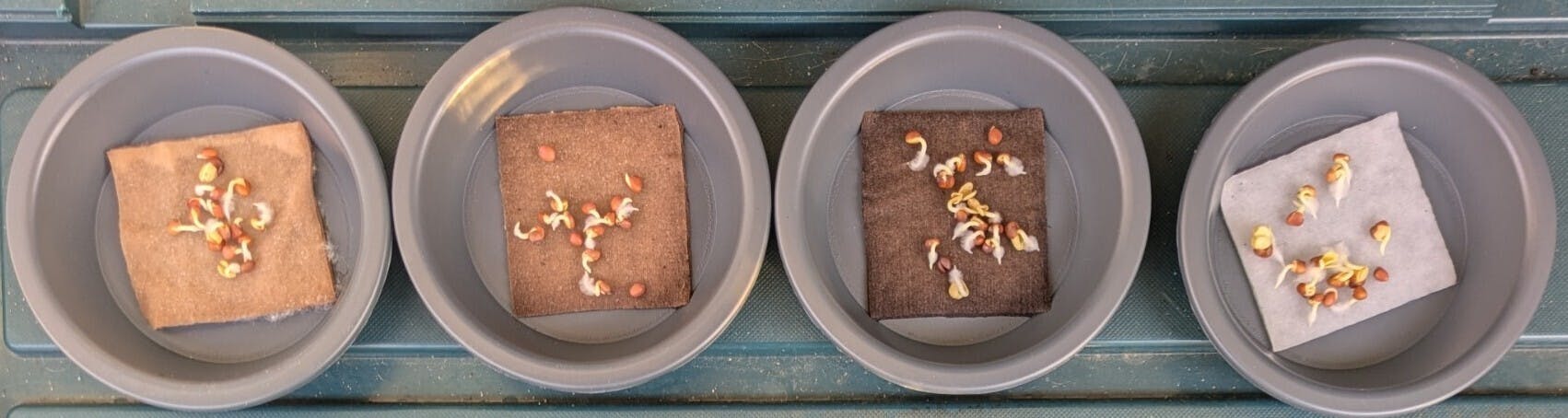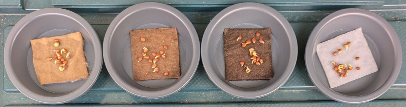 2026/03/09 10:00植害確認を目的としたかいわれスプラウト発芽試験の48時間経過です。前回の24時間時点では明確な発芽(根の突出)は確認できませんでしたが、48時間経過後、全区で発芽が確認されました。現在の状態を写真で共有します。48時間時点の状況播種から48時間経過し、・各区で根の突出(発芽)が確認・種子の溶解や腐敗は確認されず・根の褐変などの薬害症状もなし現時点では明確な植害症状は確認されていません。発芽の揃い方や根の伸長速度には区ごとの違いが見られ始めていますが、いずれの区でも正常な発芽が進んでいます。試験区ごとの印象① 腐植酸55%発芽が揃い始め、根の伸長が確認されています。② アルギン酸16%保水性が高く、湿潤状態が安定。発芽も正常に進行しています。③ 腐植酸70%色調は濃いものの、発芽・根の状態ともに異常は見られません。④ 水(対照区)標準的な発芽進行。この試験の目的この試験は「効果を見る試験」ではなくまず資材による植害(害)がないことの確認を目的としています。発芽段階での安全性が確認できなければ、次の作物試験には進めないためです。今後の観察引き続き・発芽率・根の伸長・異常個体の有無を観察していきます。なお、詳細な数値データについては支援していただいた方へ共有予定です。 もっと見る