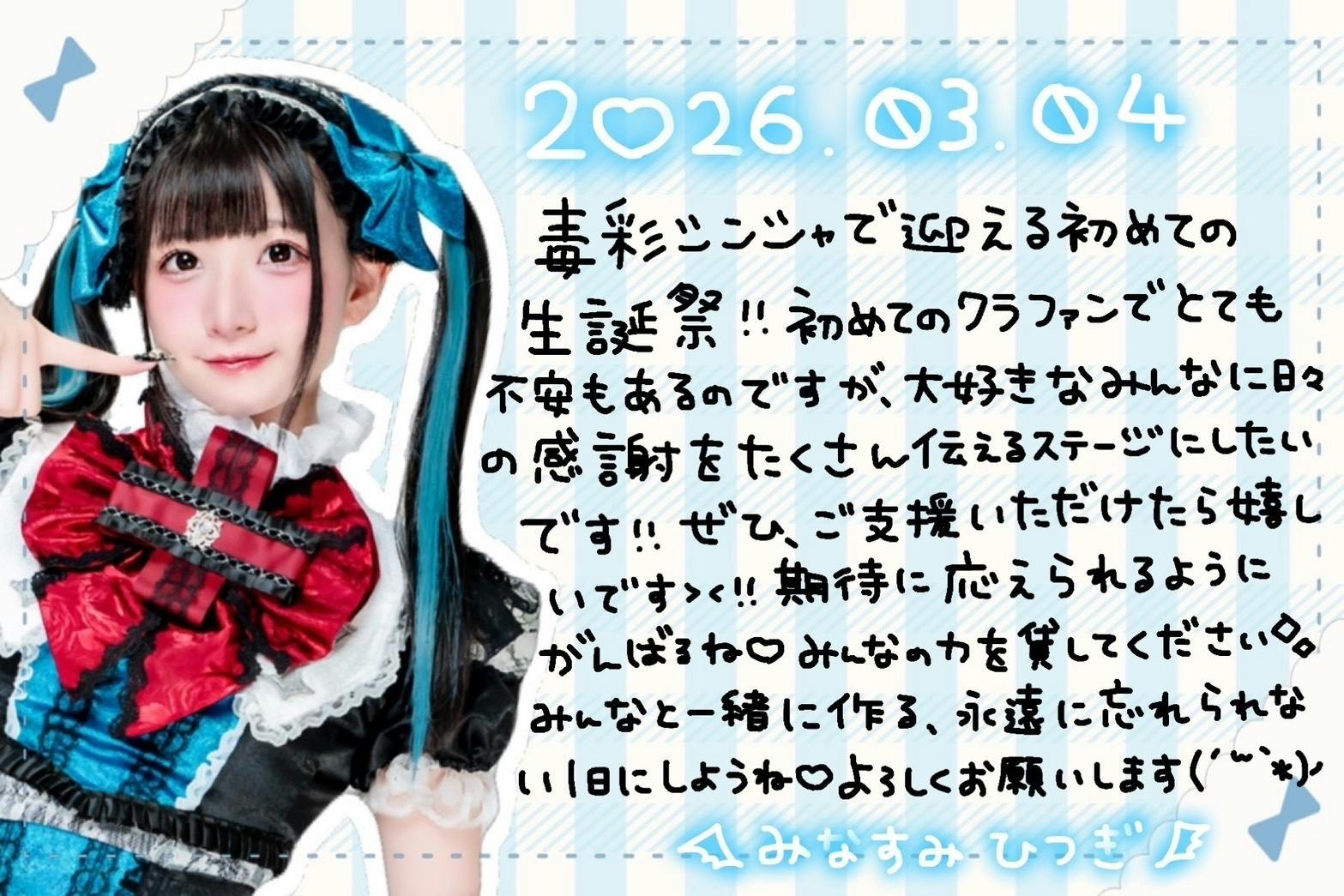 本プロジェクトは、2026年3月4日(水)に開催する「毒彩シンシャ」水那澄ひつぎ生誕イベントに向けて、ファンの皆さまにご支援とご協力をお願いするためのクラウドファンディングです!