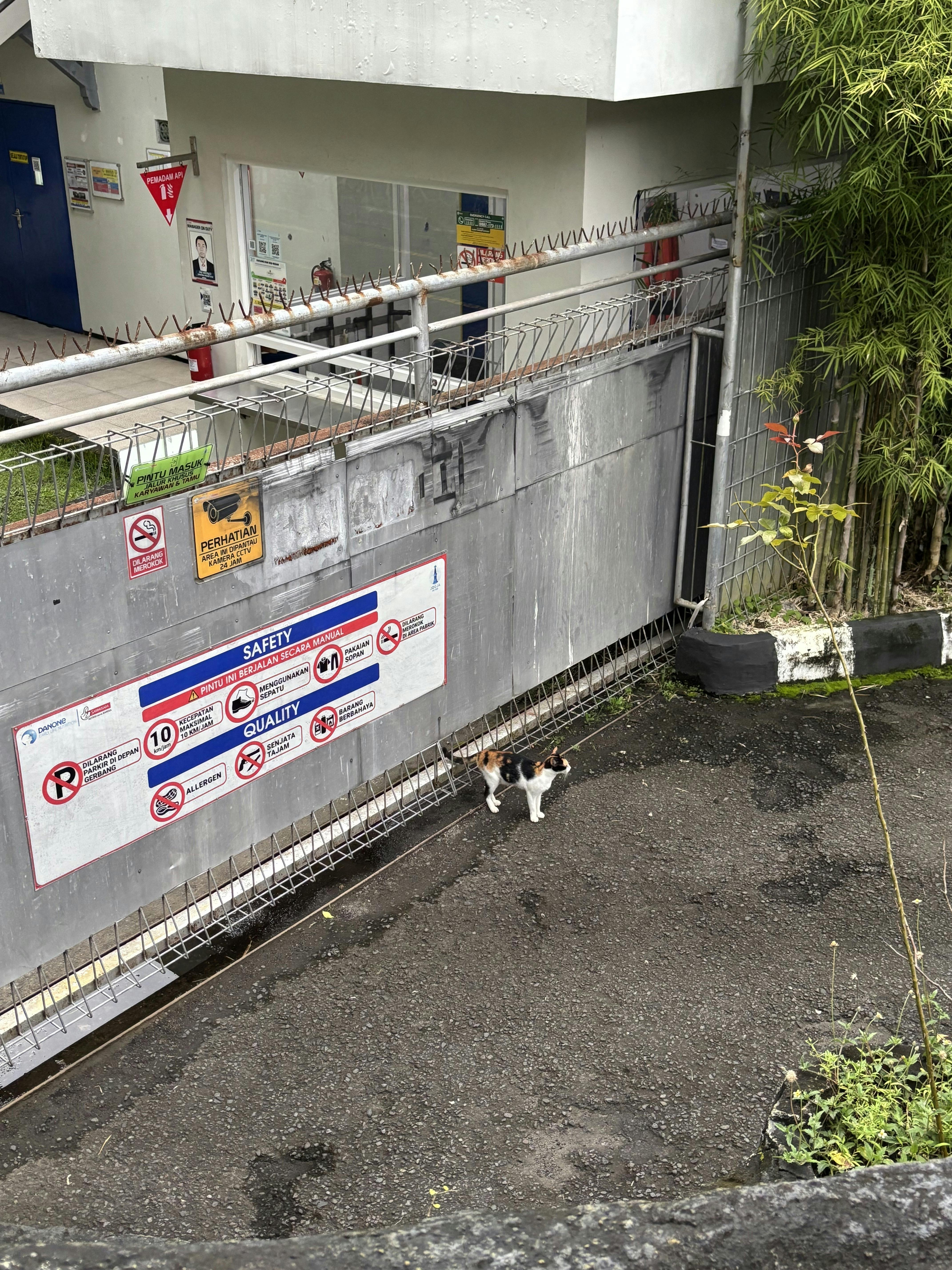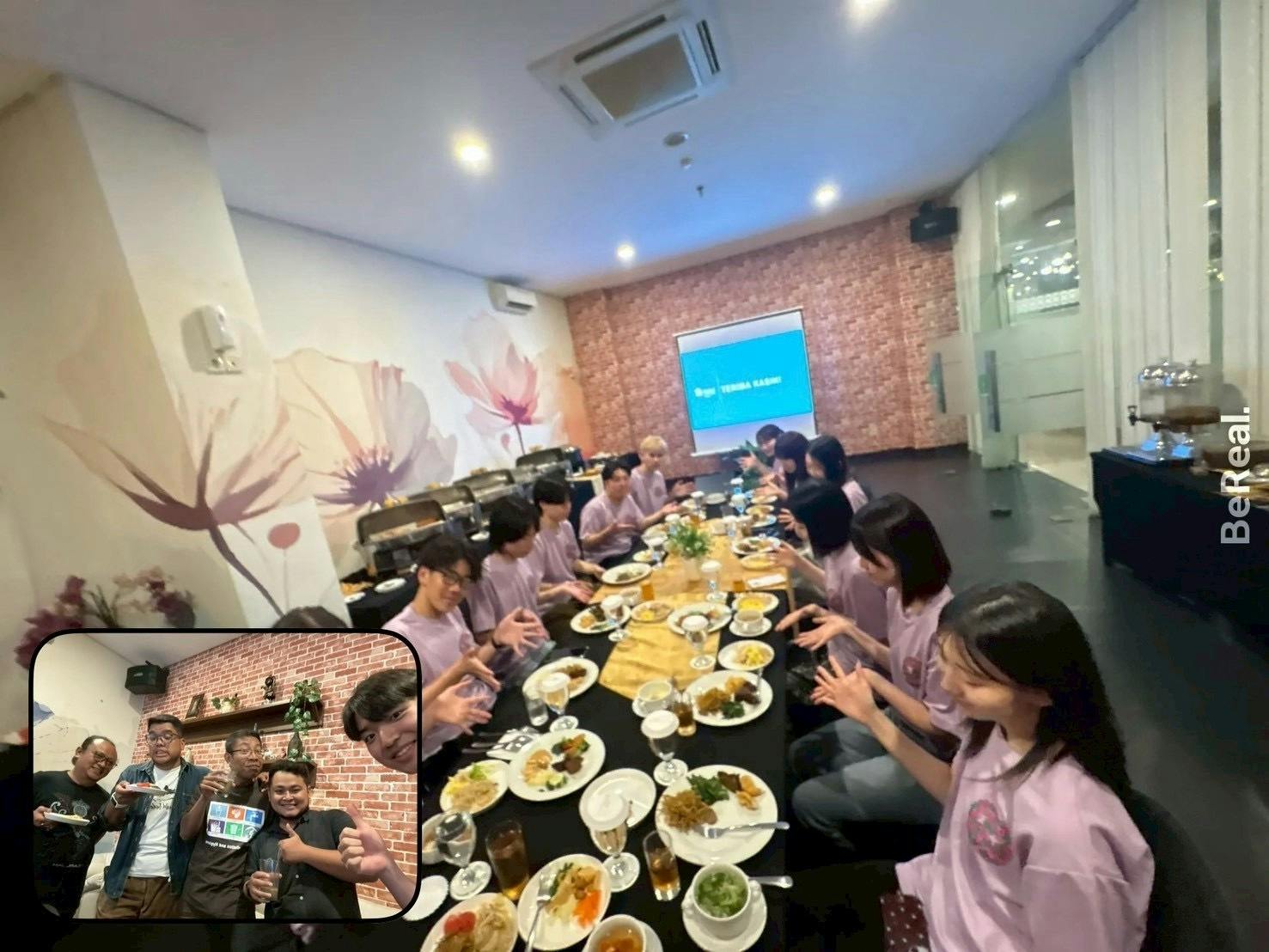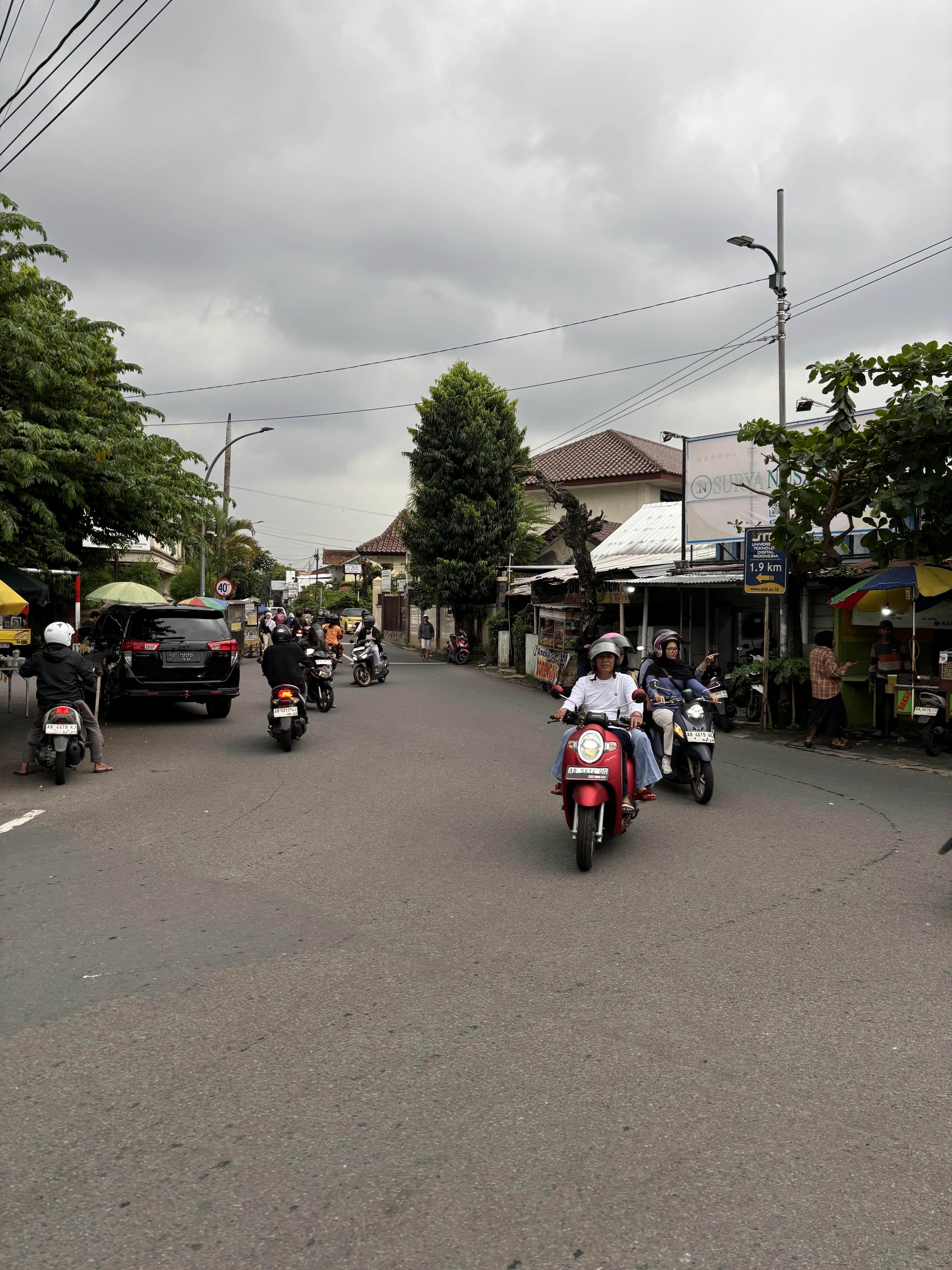チェックイン後は各々自由な時間を過ごし、コーディネーターの方がメンバー数人を連れてホテルの周辺を案内してくださいました。インドネシアは世界4位の人口を誇るだけあって交通量がとても多く、歩道が狭かったため、落ちないように必死でした。何よりインドネシアの交通で私が1番驚いたのはバイクの多さです。日本とは比べ物にならないくらい多く車の間をすり抜けながら走行していて凄いと思いました。また、現在インドネシアは雨季ということで急な天候の変化もあるためみんな傘を持っていました!