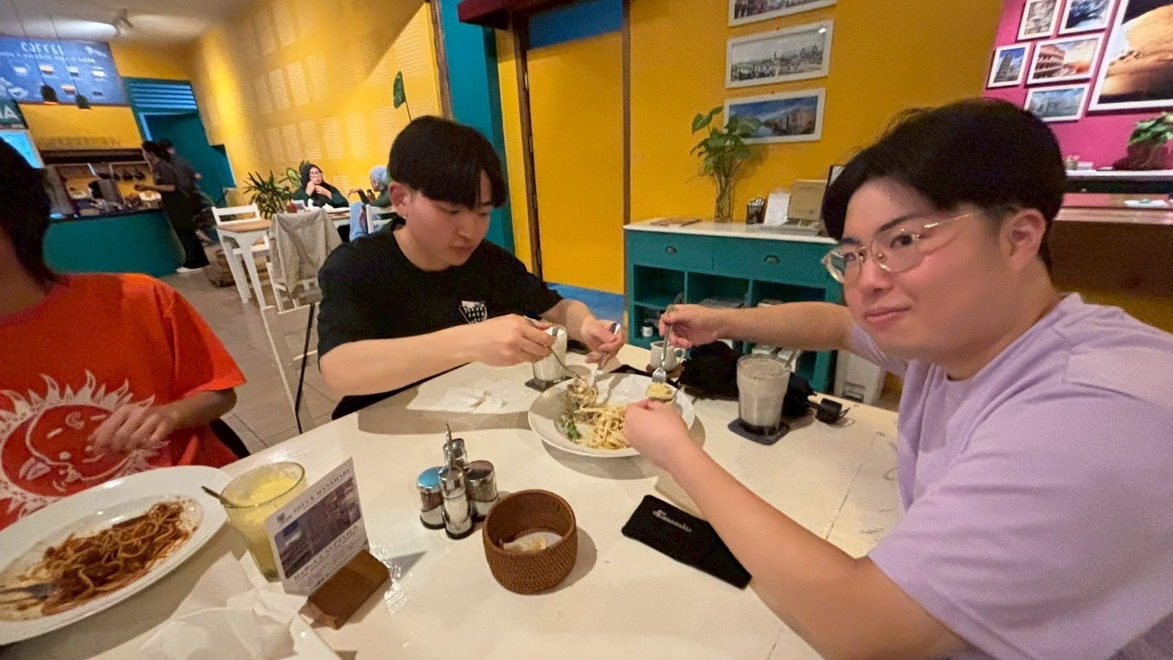 一日の作業を終えた後は、気分を変えてイタリアンレストランへ! 泥まみれになって働いた後のピザやパスタは格別で、みんな驚くほどの食欲で完食し、大満足の締めくくりとなりました。