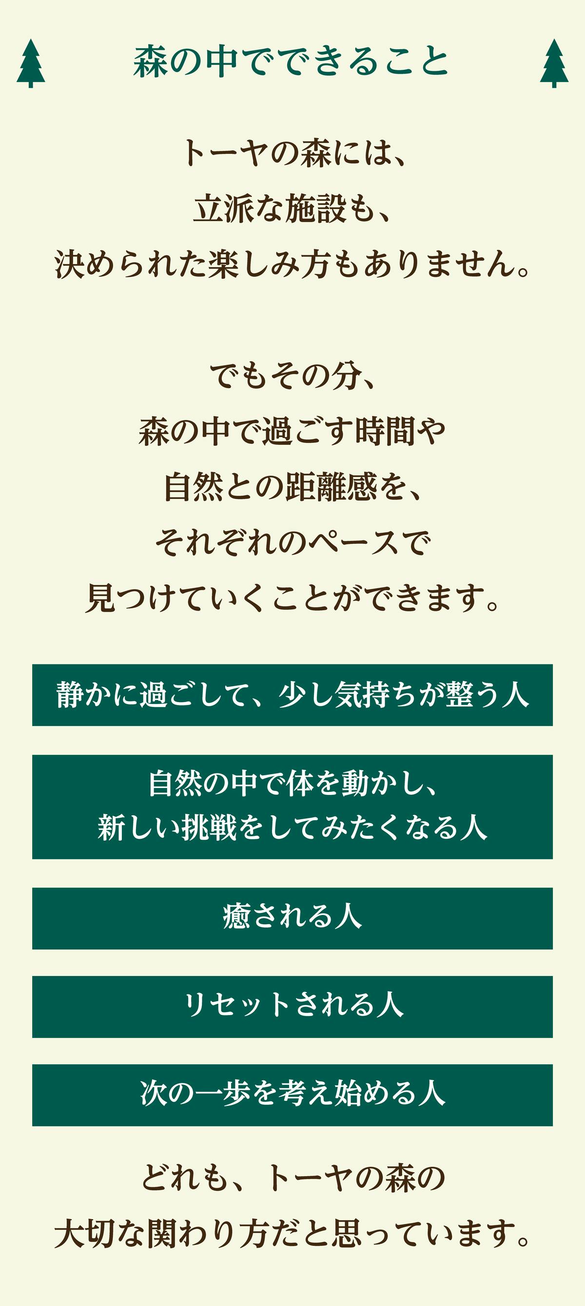 でもだからこそ、この森には、あなたのための余白がたっぷりと残っています。