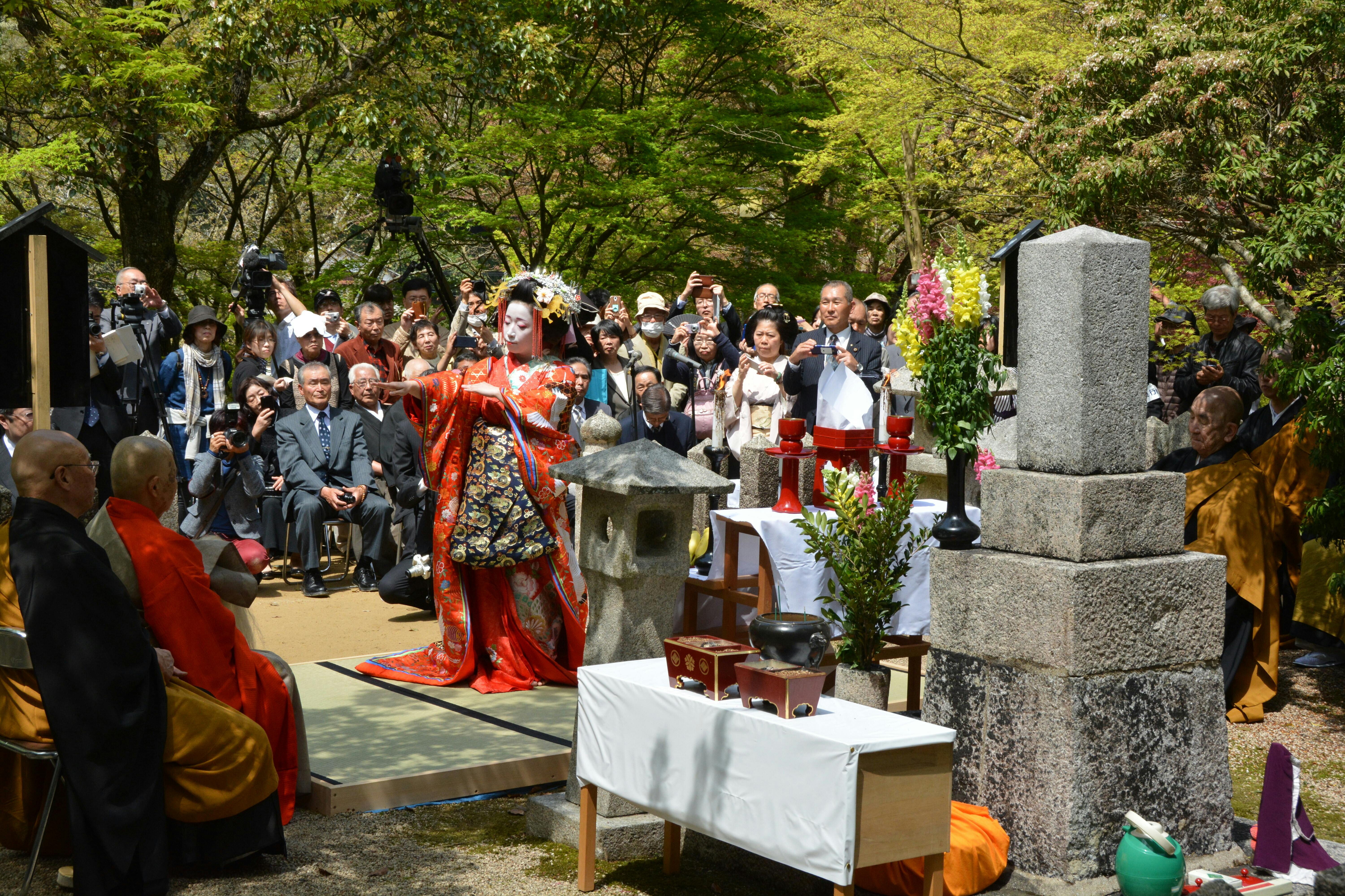晋作さんが「自分が死んだら、墓の前に芸妓を集めて賑やかに供養してほしい」という遺言があり、こうして150回忌の日に京都の嶋原太夫の奉納舞をご披露いただきました。あの世で、きっと喜んでおられたことでしょう。
