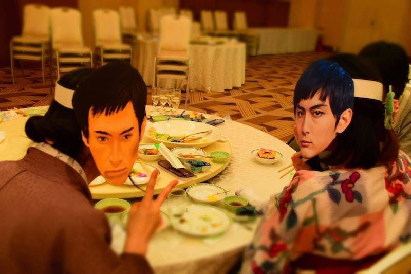 さて、ご案内です。4月11日(土)の夜は「晋作ナイト」を開催する予定です。10年前の150回忌の時は生涯学習プラザで講演やシンポジウムを行なった流れで、下関駅前の会場で懇親会を行いました。これはその時の一コマです。ちょうど大河ドラマ「花燃ゆ」が放映された後でしたので、晋作役の高良健吾さんのお面などを作って盛り上げてくれたゲストがいました。