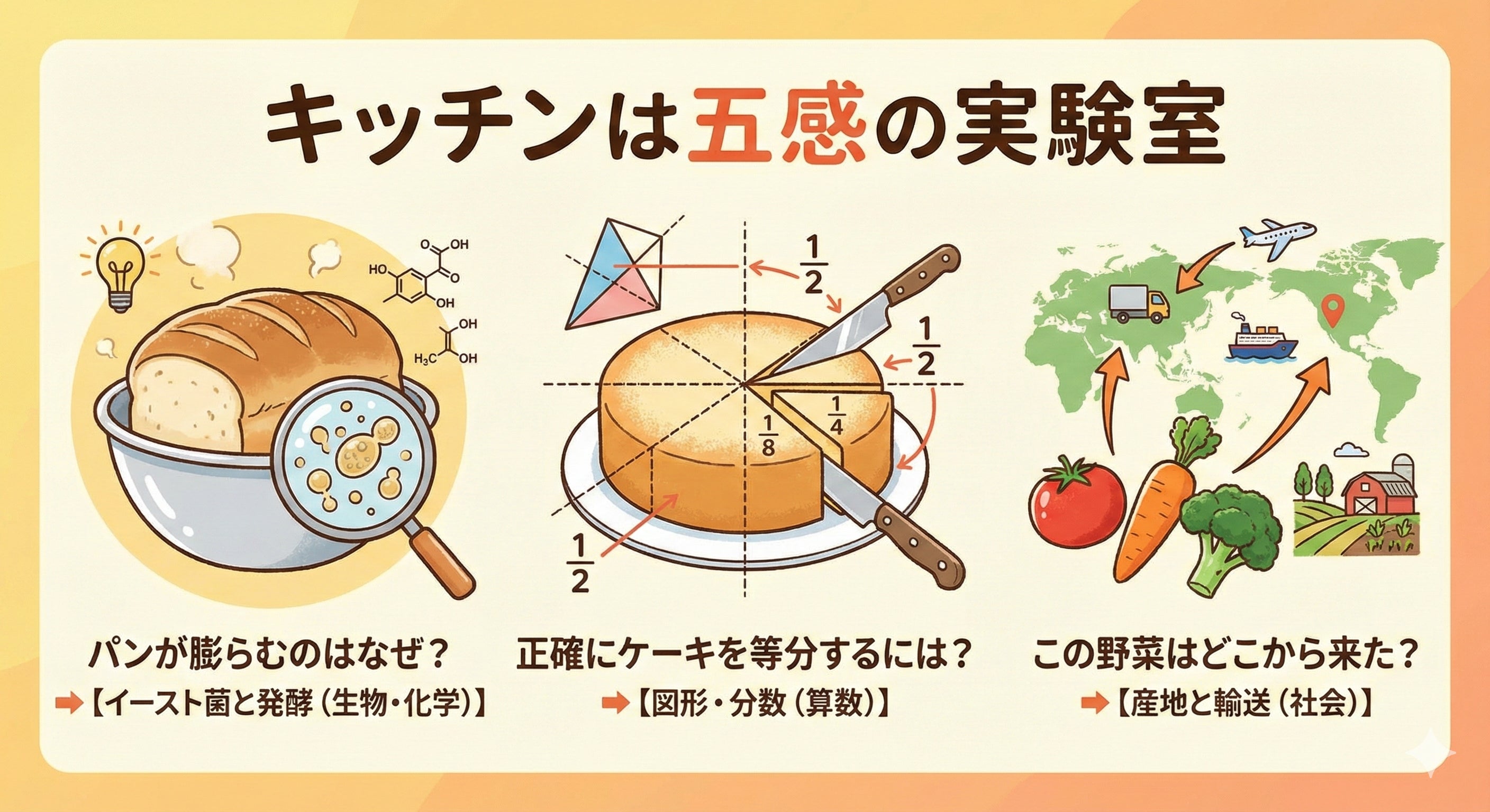 キッチンに立つと、無機質な教科書の知識が、五感を使った「生きた知恵」に変わります。私たちはここを、美味しくてワクワクする「食の実験室(Food Lab)」として稼働させ、理科や社会への知的好奇心を刺激し続けます。
