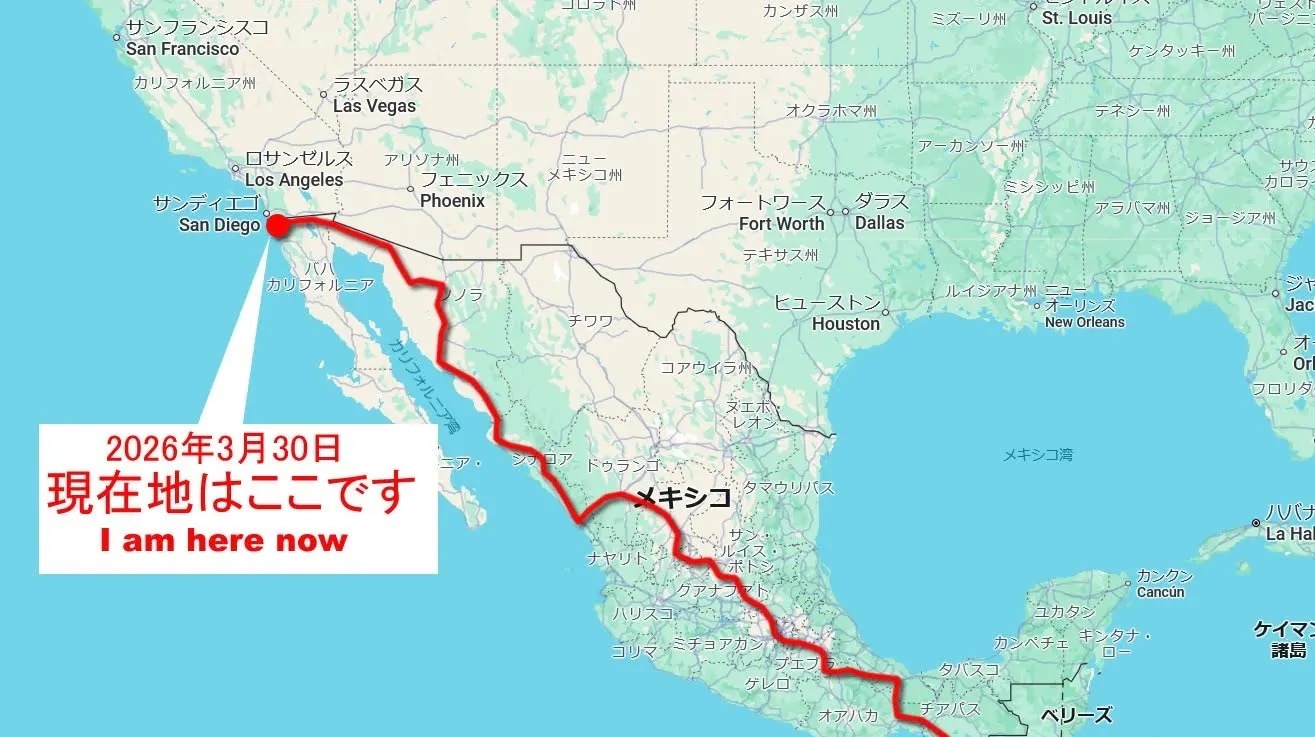 メキシコでは麻薬カルテルが力を持っており、色々と危険な噂が飛び交っていたので、自転車で無人地帯を通過する時など少し怖かったのですが、最後まで問題なく走行できました。
