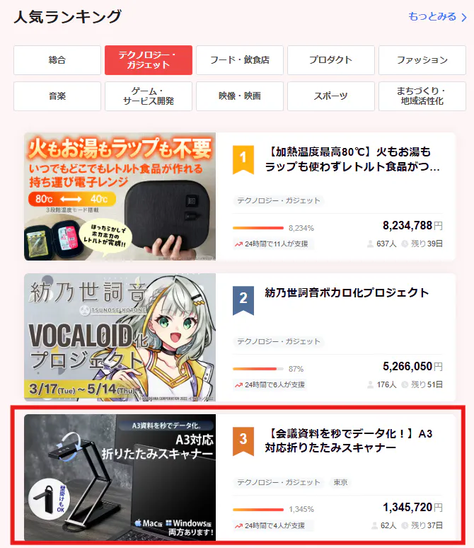 また本日のCamfireランキングテクノロジー·ガジエット部門で 3 位に入賞することが出来ました!
