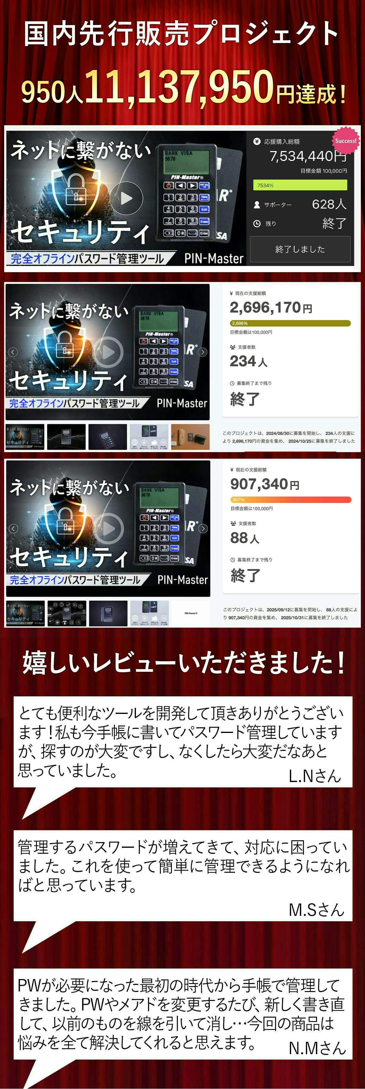 パスワード管理に頭を抱えている仲間にPIN-Masterを紹介したい!その思いで今回起案させていただきました。