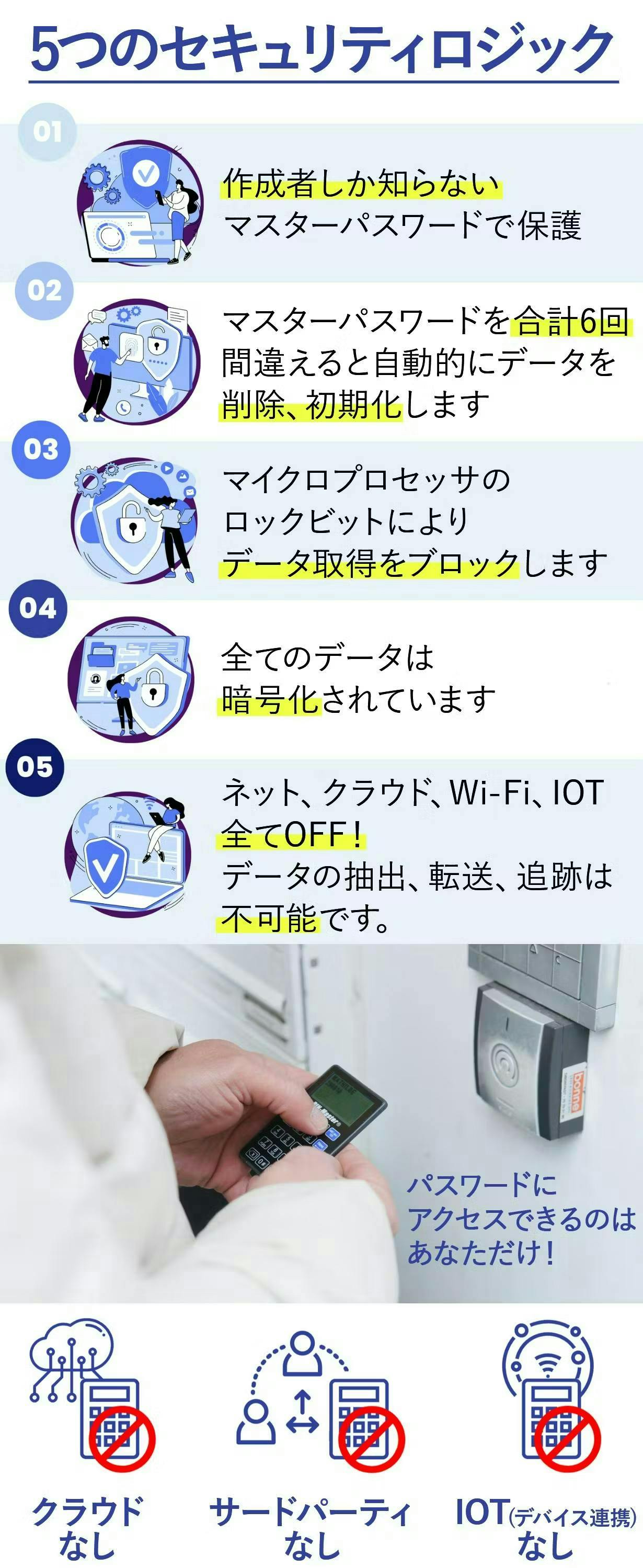 万が一紛失した際にも、高セキュリティであなたのパスワードを守ります。