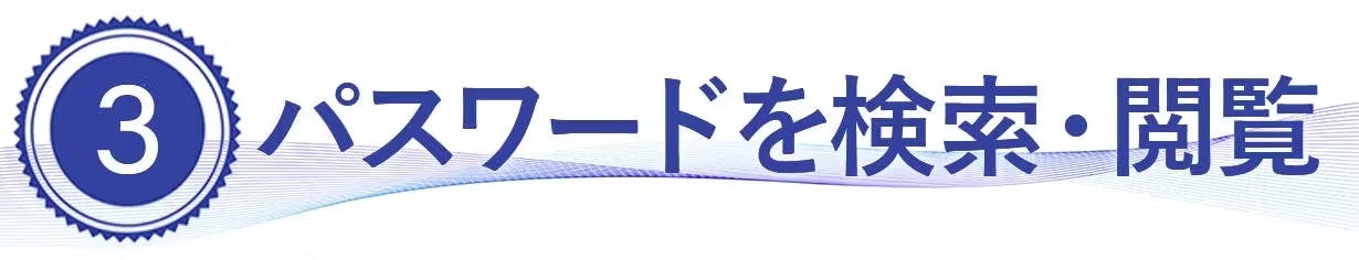 ②「◀」「▶」ボタンもしくは検索で、パスワードを表示、閲覧します。
