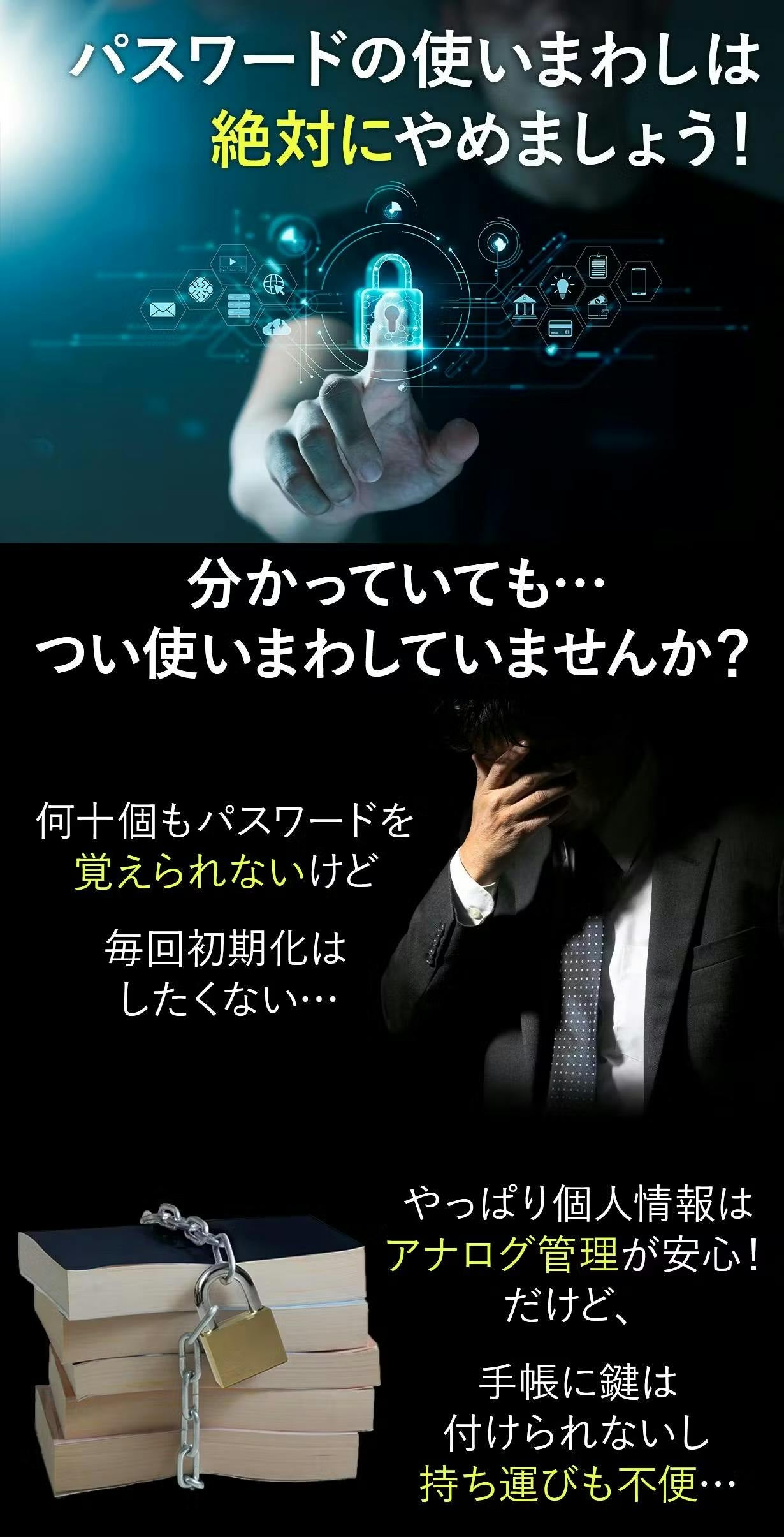 ネット上の管理では、情報漏洩やツールを使用した不正ログイン攻撃の不安がありますが、手帳で管理すると探す手間とストレスがかかっていました。