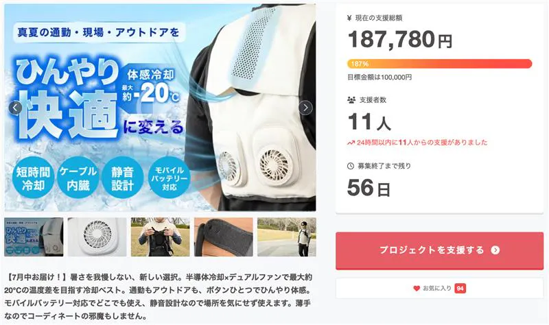 この度は「着た瞬間ひんやり。半導体冷却×送風で、夏の作業・通勤をクールに【冷却ベスト】」に支援頂き誠にありがとうございます!