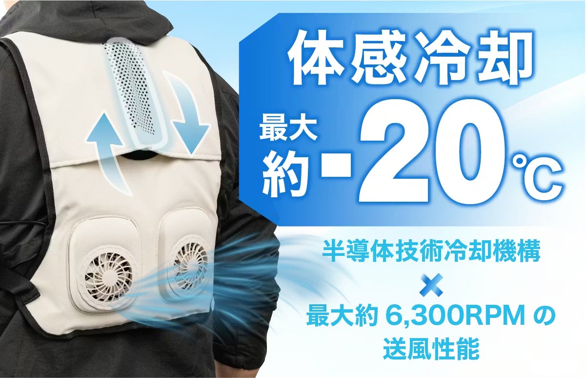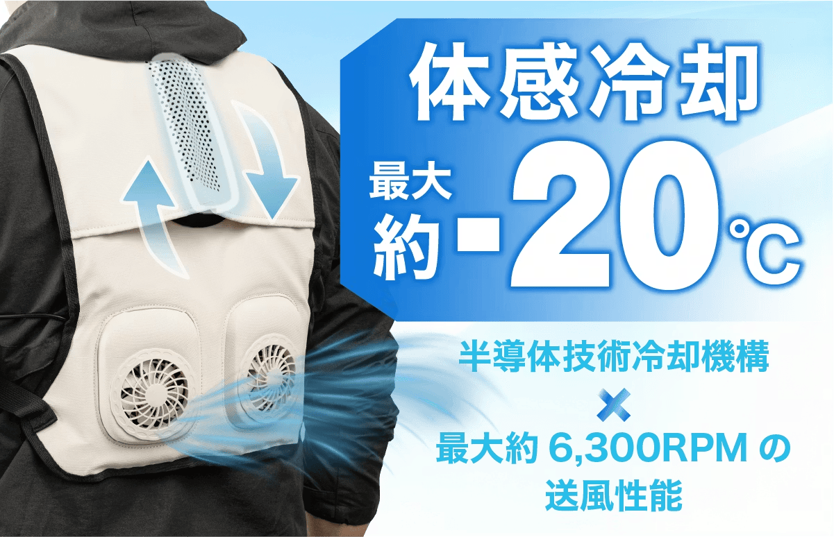 従来の送風ベストとは異なり、冷却スーツは半導体による冷却技術を採用し、さらに最大約6,300RPMの高性能ファンを搭載しています。この組み合わせにより、衣服内の空気を効率的に循環させ、体にこもった熱を素早く外へ逃がすことが可能になります。炎天下での庭作業においても、常に涼しさを感じられるため、作業中の不快感を大きく軽減できます。また、汗の蒸発を促進することで、ベタつきによるストレスも抑えられ、長時間の作業でも快適な状態を維持できます。結果として、集中力を保ちながら効率よく作業を進めることができるでしょう。