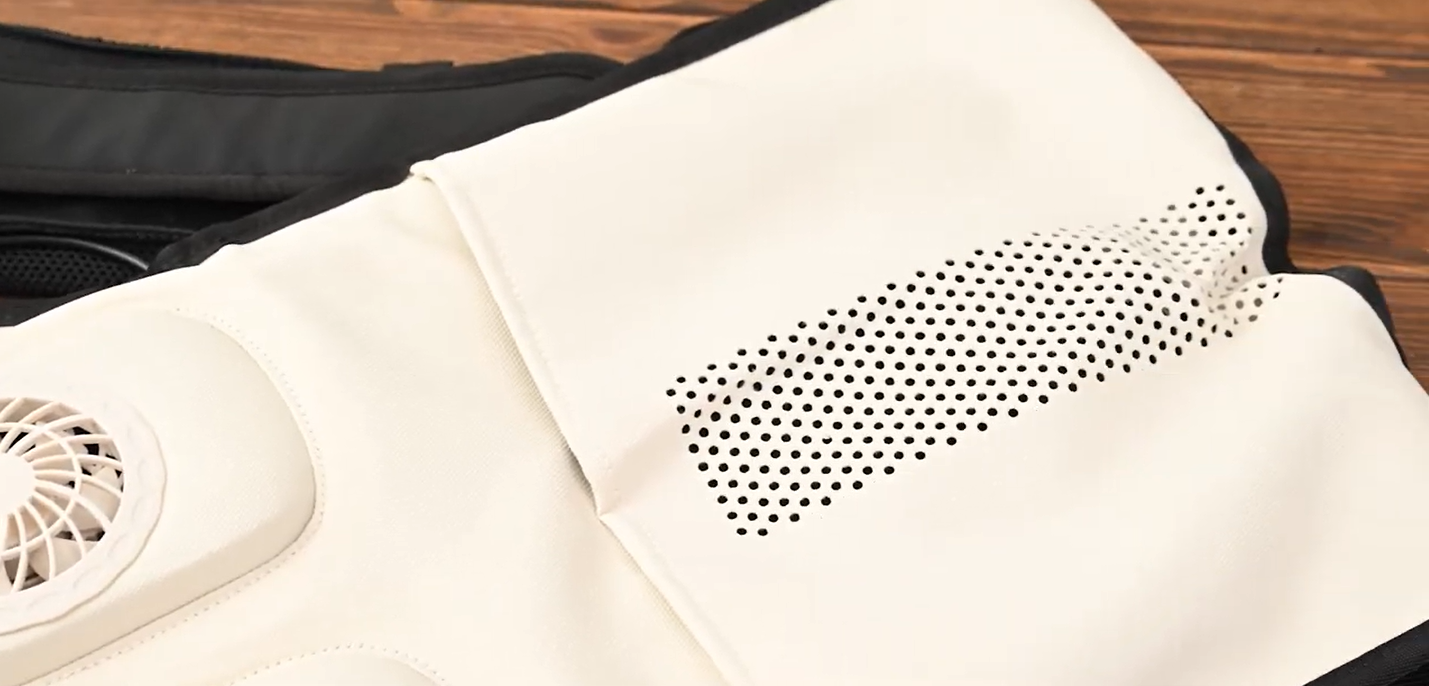 製品の快適性を支えるもう一つの柱が、厳選された先進素材とスマートなプロダクトデザインです。ベスト本体には吸汗速乾性に優れた特殊素材を使用しており、衣服内の蒸れによる不快感を徹底的に排除します。さらに、デザイン面での革新と言えるのが、冷却デバイスや配線をすべてウェアの内部に完備したインテグレート設計です。外部に露出するケーブルがないため、狭い足場や入り組んだ場所での作業中であっても、コードが周囲に引っかかるリスクがなく安全に作業を進められます。