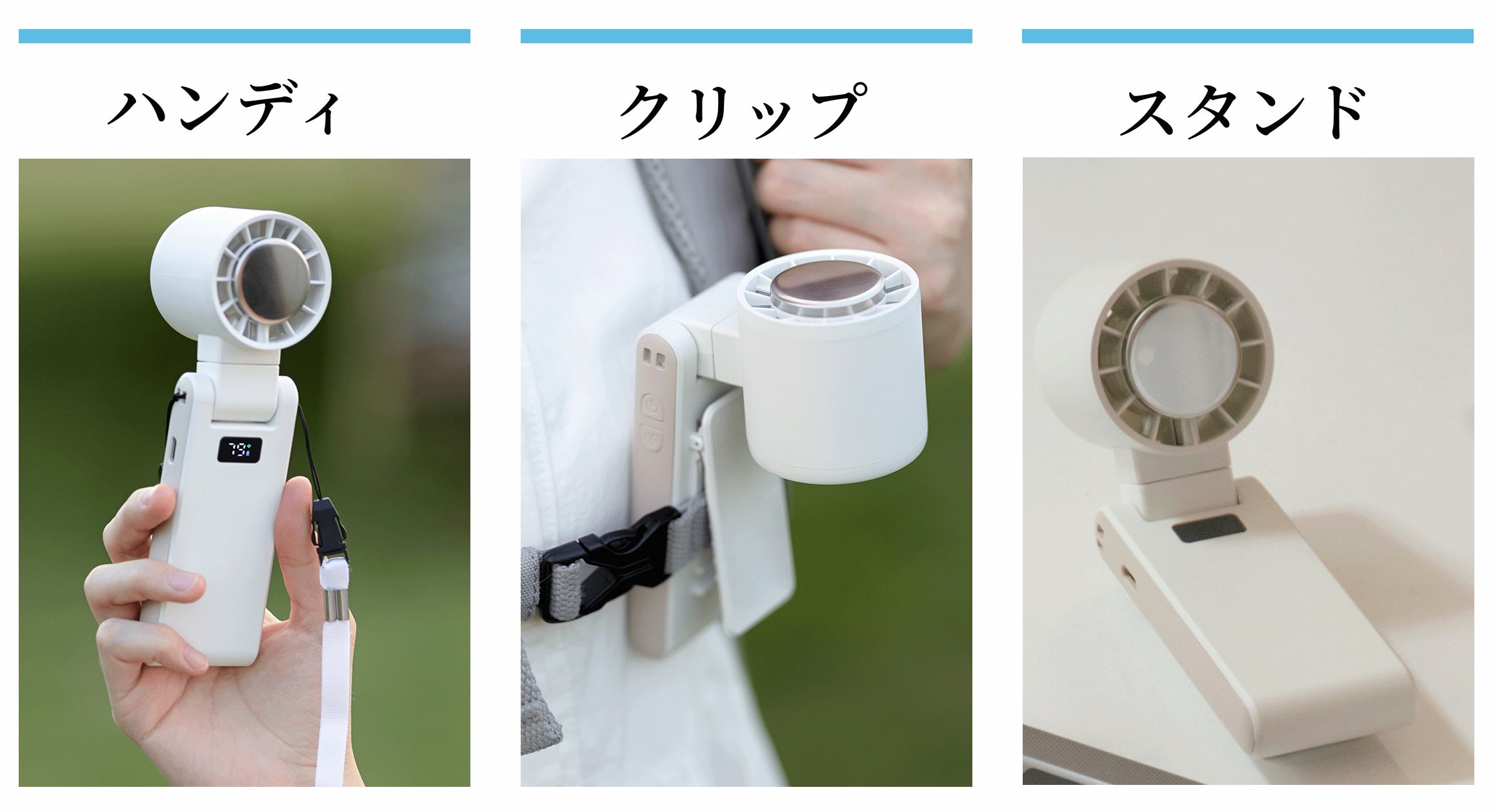 多様な用途で対応可能!ハンディ・クリップ・スタンドでどこでも快適に使用ができる3IN1スタイル。