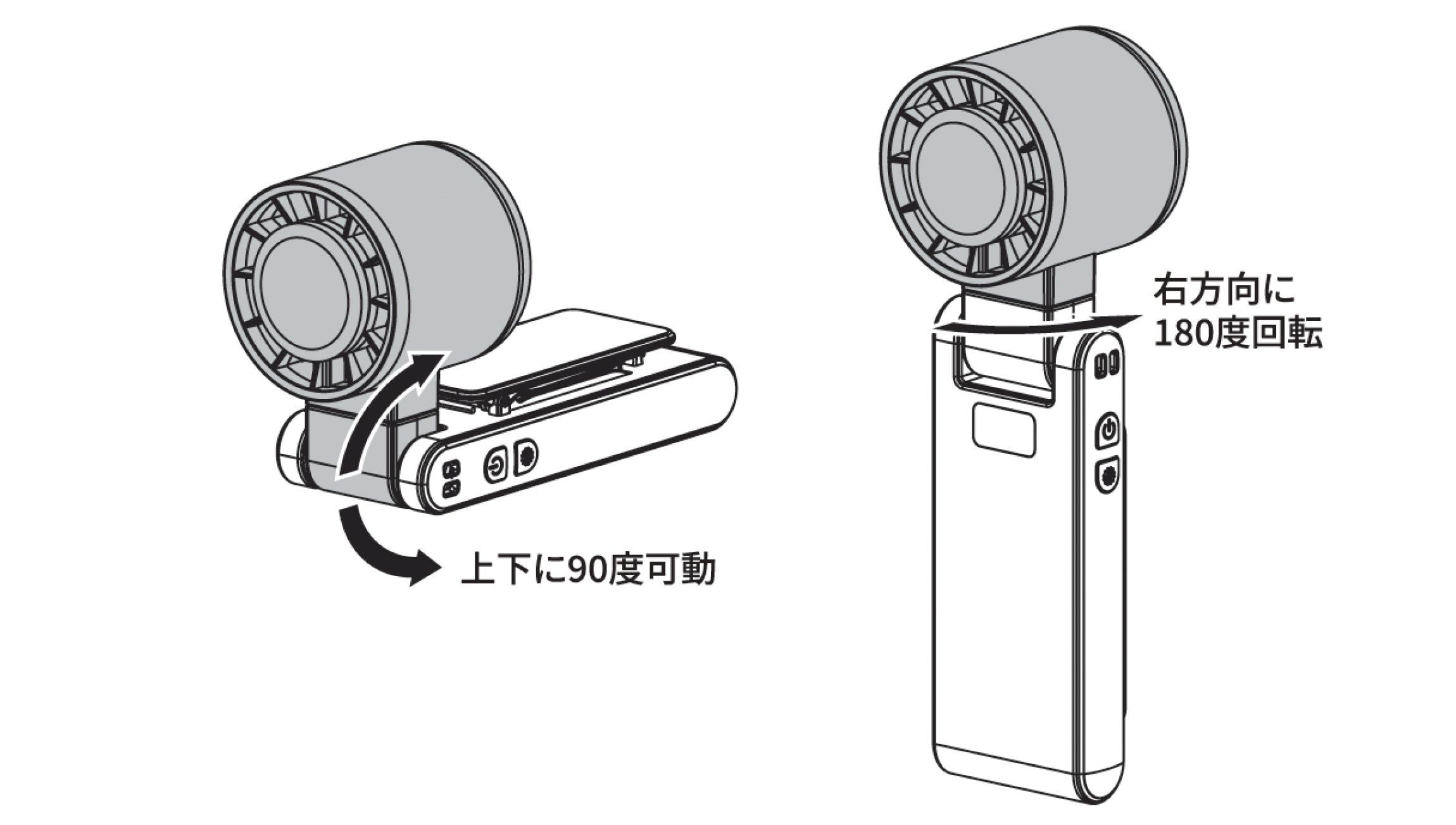 ファンは上下左右に角度を調整が可能。360°全方位を涼しくすることができます。