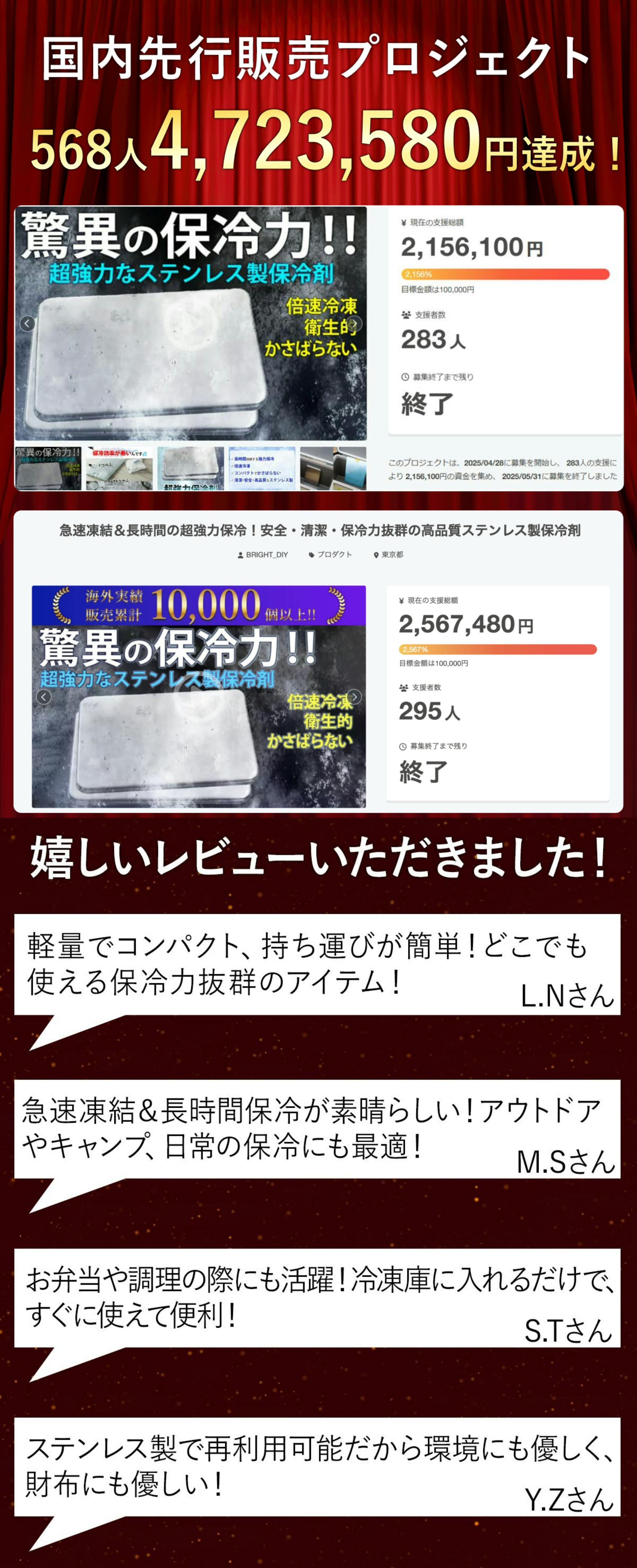 急速凍結&長時間の超強力保冷!安全・清潔・保冷力抜群の高品質ステンレス製保冷剤 公開前