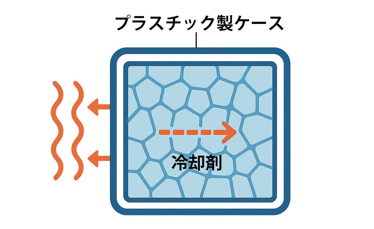 冷却剤を囲っているプラスチック自体が熱を通しにくいため、熱を吸い取ることやそれを冷やすのに時間がかかってしまいます。