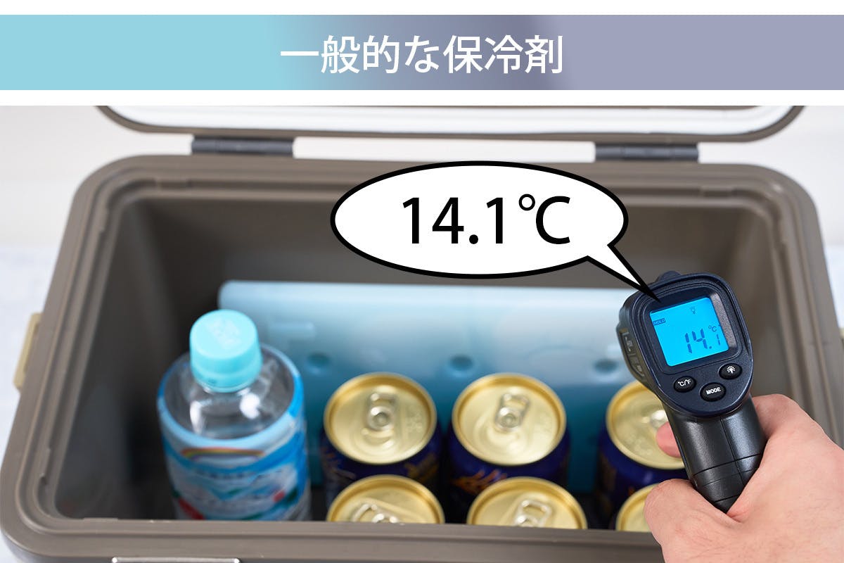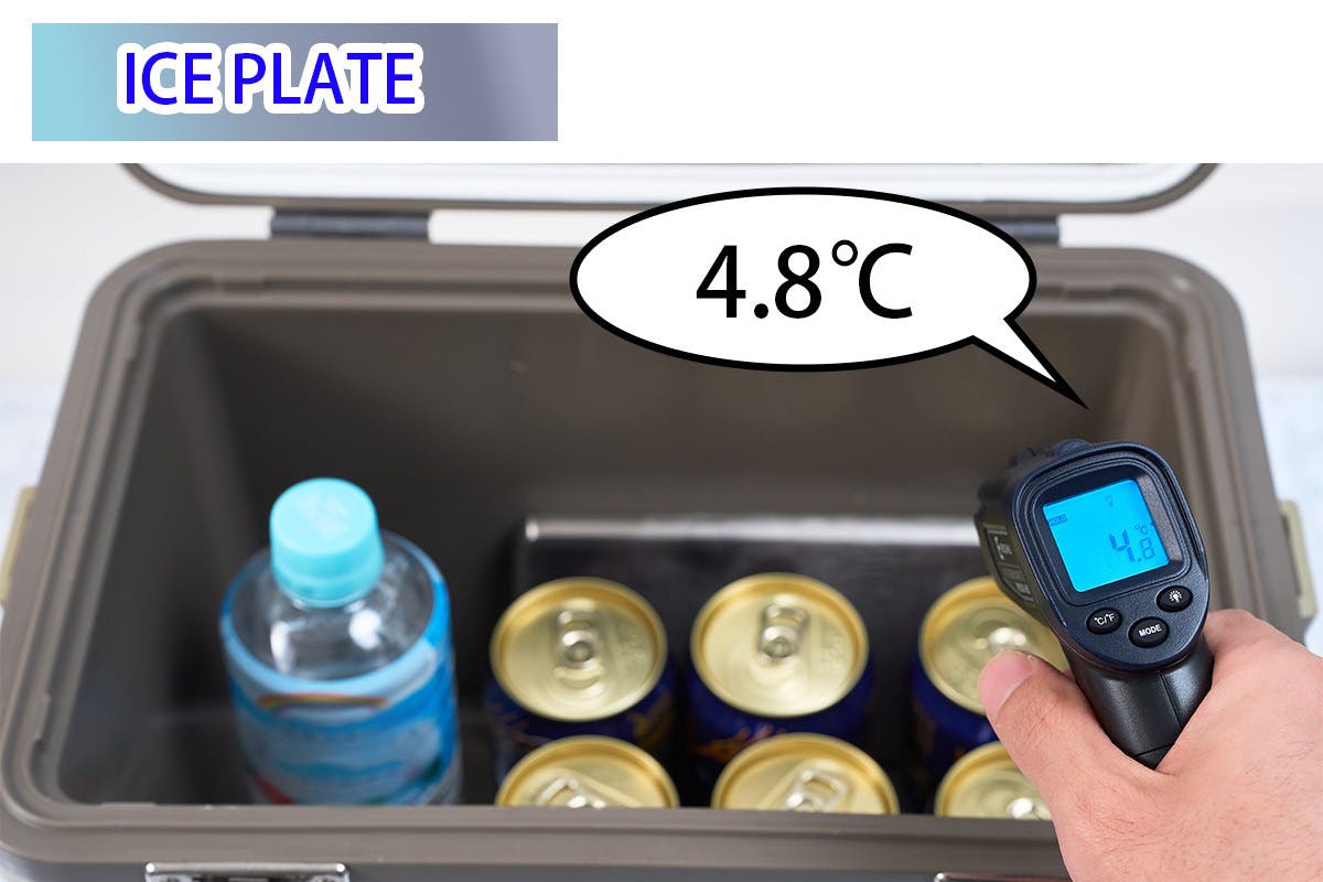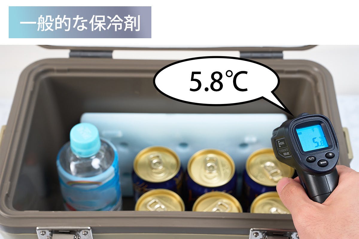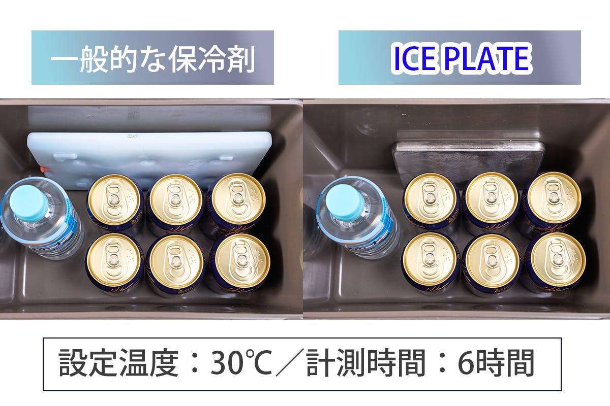 一般的な保冷剤とICE PLATEで6時間経過した時のクーラーボックス内の保冷温度を実際に比較実験してみました。