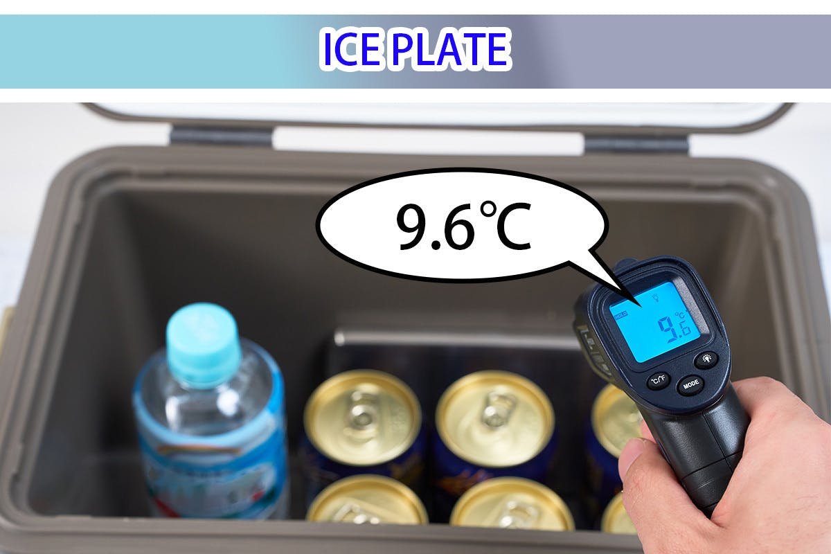 一方ICE PLATEの方は9.6℃。ボックスを開けたときにひんやりさもあり、一般的な保冷剤よりもよく冷えている状態でした!