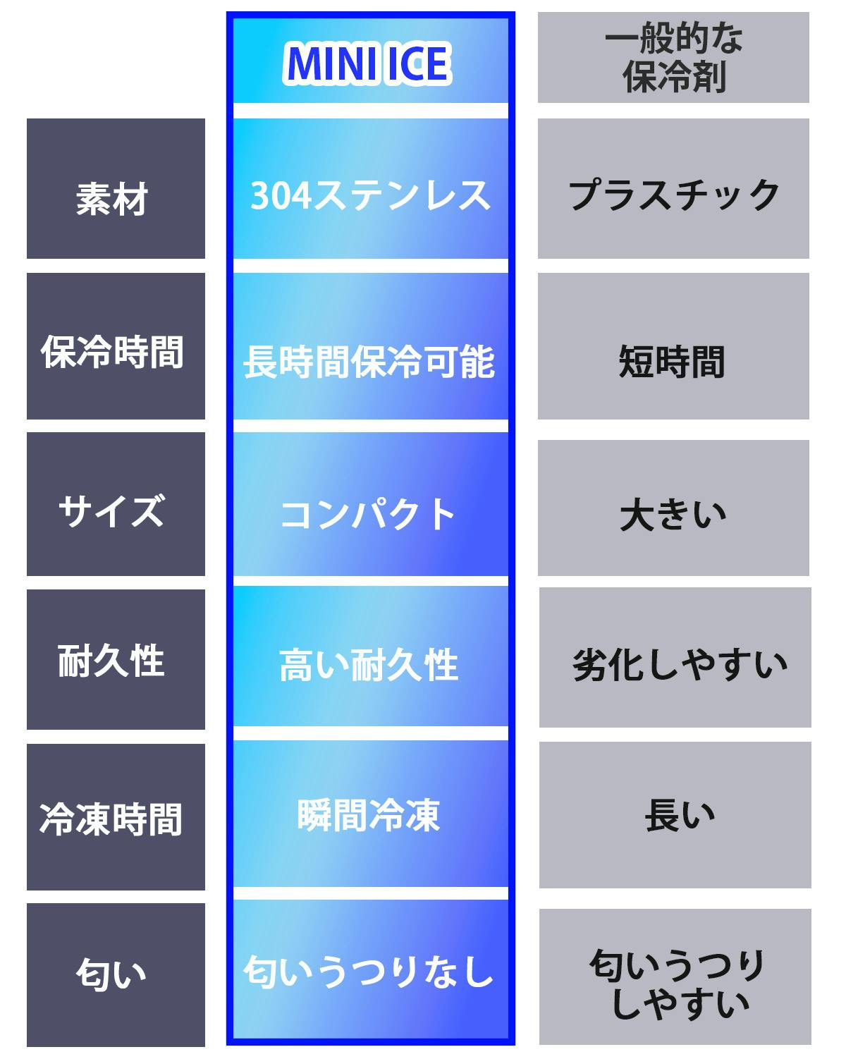 凍結速度は従来のプラスチック製保冷材よりも速いのが大きな特徴です!