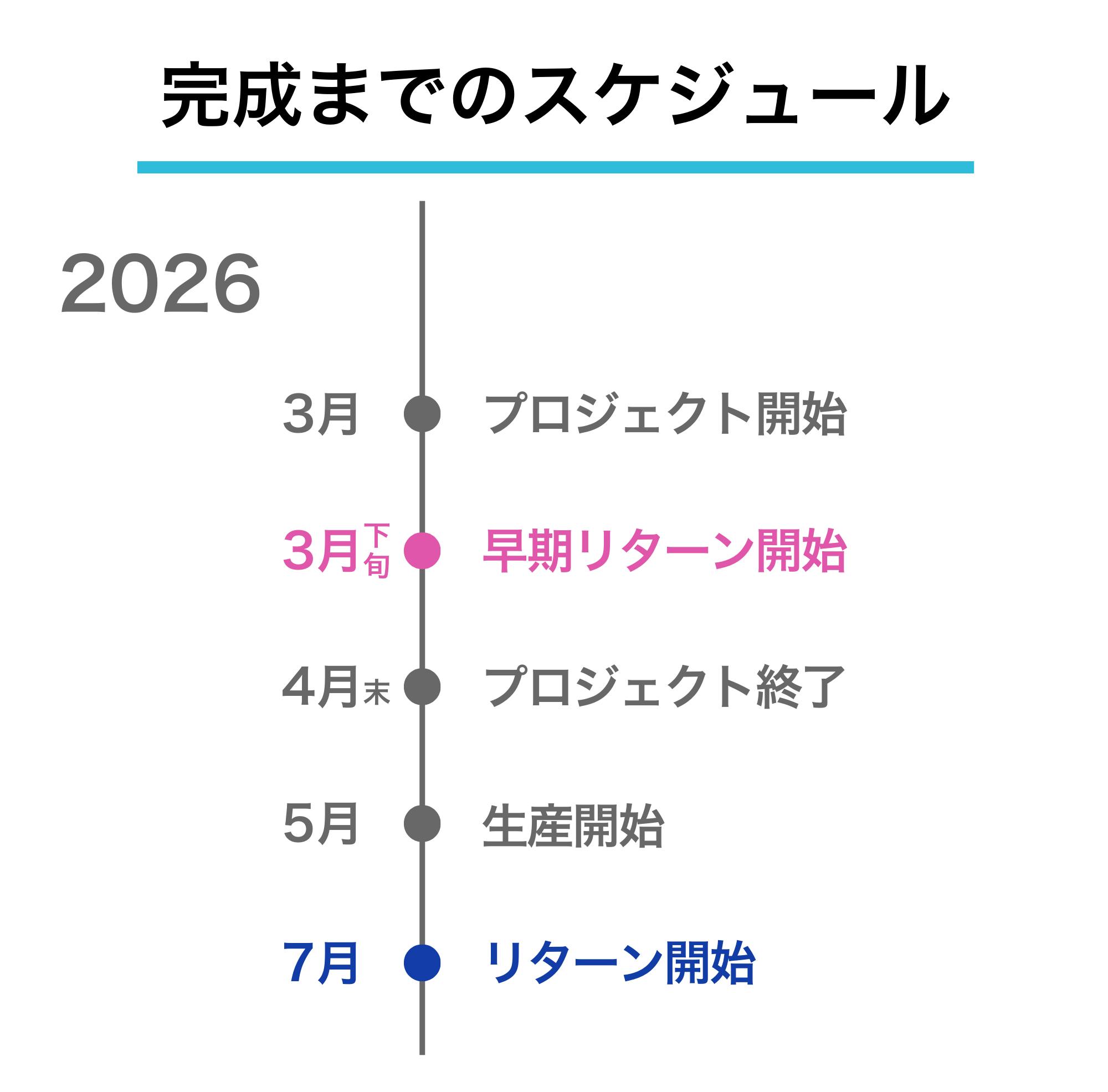 ※本文中に記載させていただいたスケジュールは、あくまでプロジェクト公開時点の予定です。クラウドファンディングを経て輸入を行う性質上、配送遅延のおそれがございます。