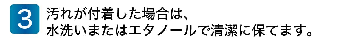 汚れが付着した場合は、水洗いまたはエタノールで清潔に保つことができます。