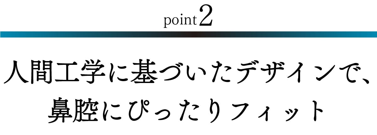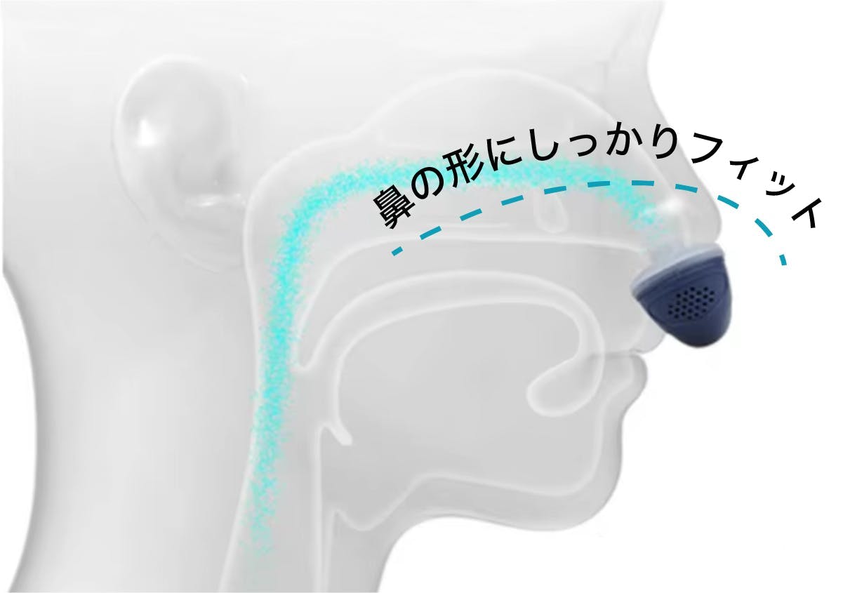 鼻の中に装着することで、空気の流れに配慮した状態をつくりやすい構造になっています。
