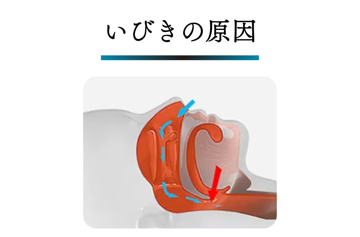 いびきは、呼吸の通り道が狭くなることで起こります。