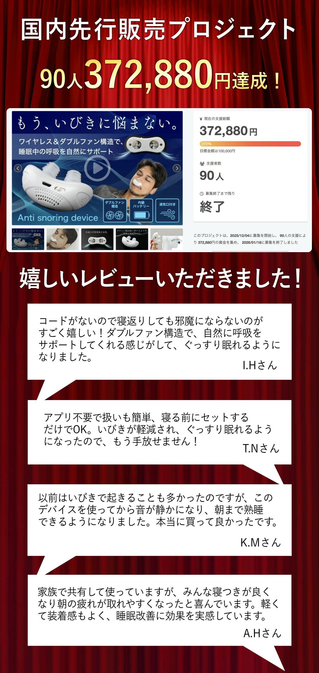 2026/03/04 11:12この度は「ワイヤレス&ダブルファン構造で睡眠中の呼吸を自然にサポート【いびきデバイス】」に支援頂き誠にありがとうございます!お陰様で、開始から2分経たずに1万円の目標金額を100%達成することができました。ご興味のある方、ぜひ支援お願い致します。https://camp-fire.jp/projects/923650/viewBrightチームは、当プロジェクトをもっと多くの方に知っていただきたいと考えております。よかったら、FacebookやTwitter等のSNSでのシェア・拡散をお願い致します。#brightdiyどうぞよろしくお願い致します。Brightチーム もっと見る