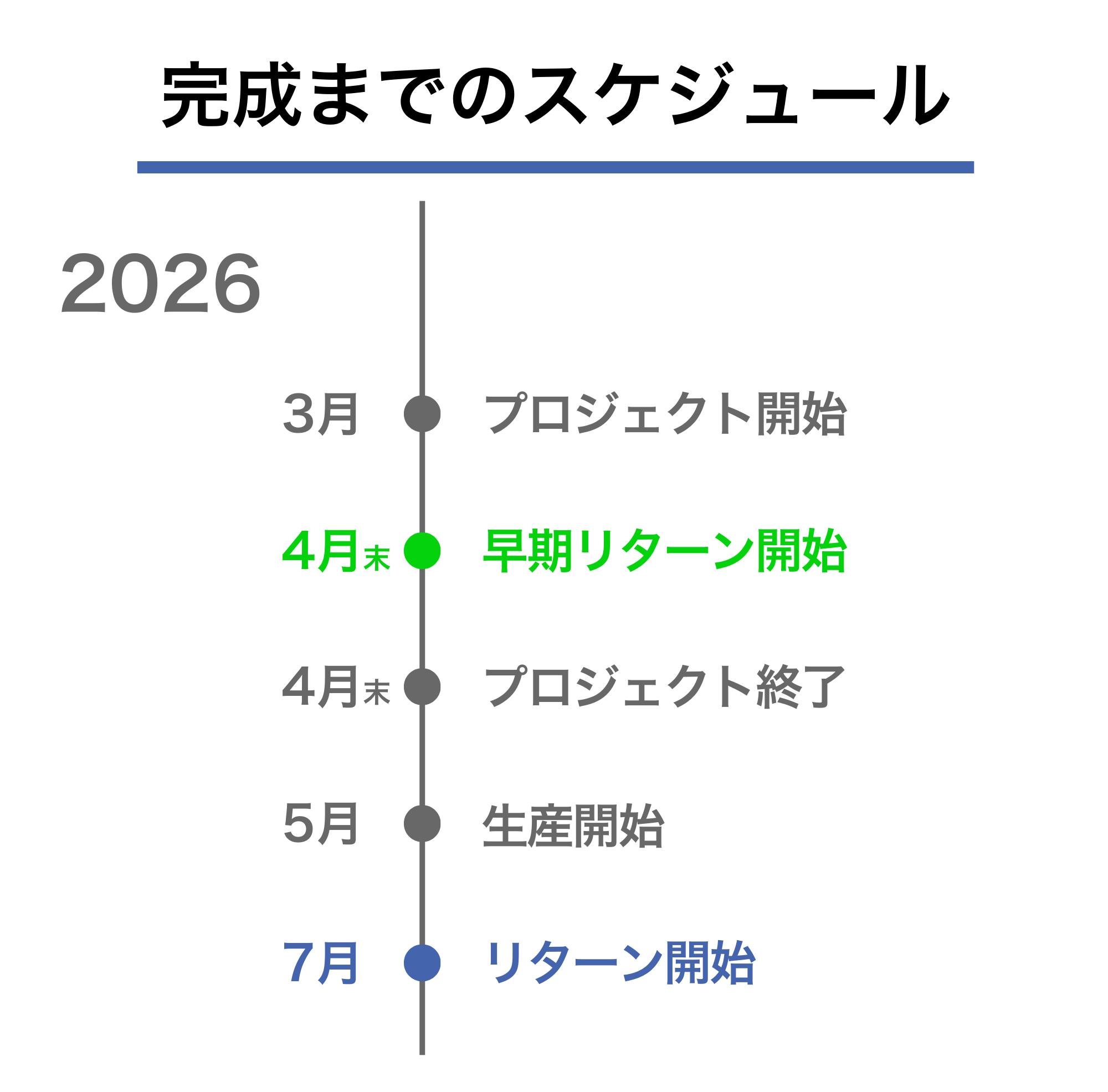※本文中に記載させていただいたスケジュールは、あくまでプロジェクト公開時点の予定です。クラウドファンディングを経て輸入を行う性質上、配送遅延のおそれがございます。