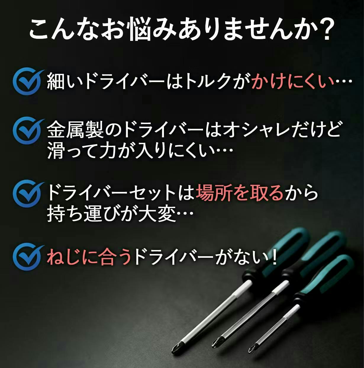 選択肢がたくさんあるからこそ、ただ使えるだけではなく「持っていてワクワクする」「デザイン性と利便性を両立している」ドライバーツールが欲しいと思っていました。