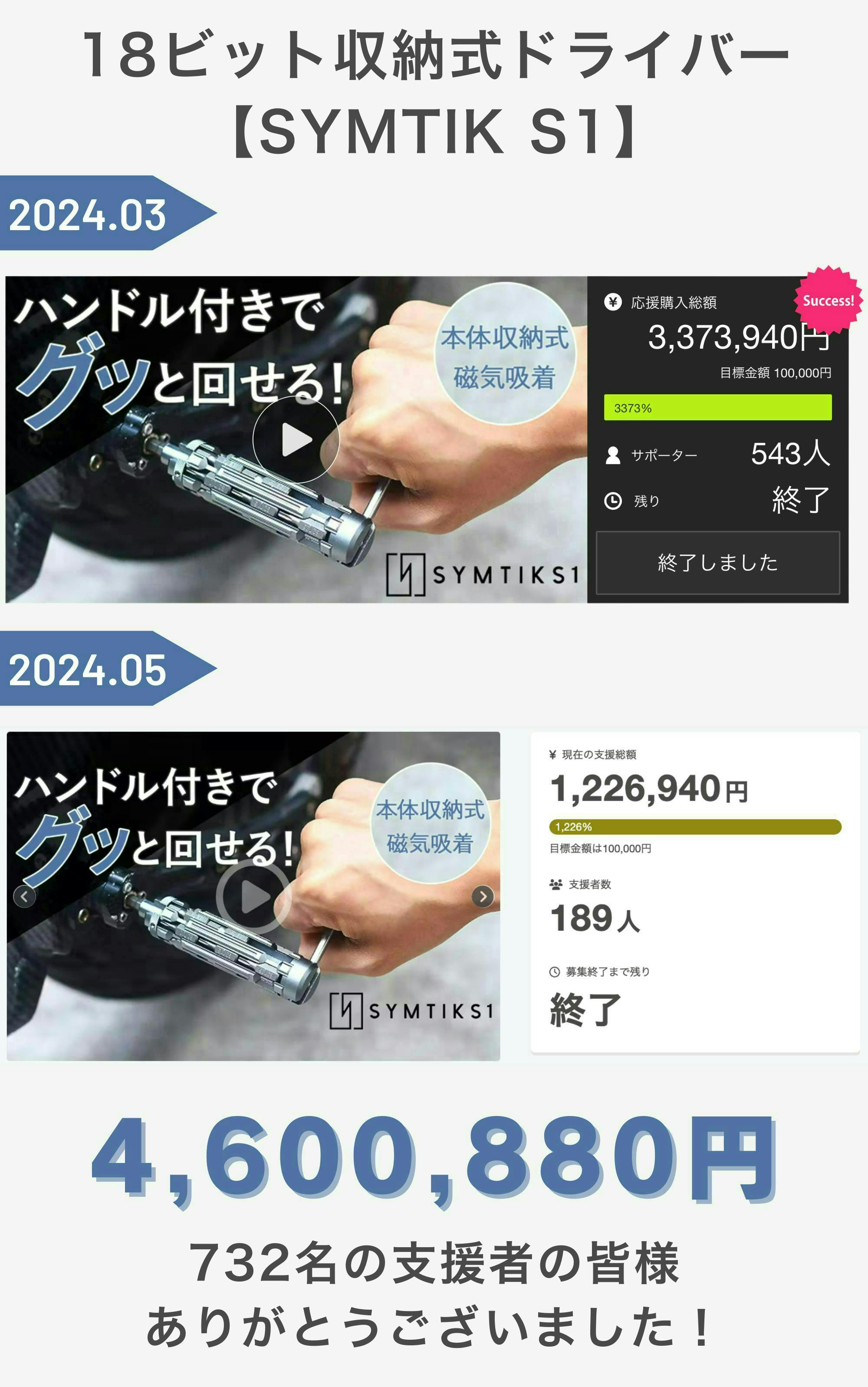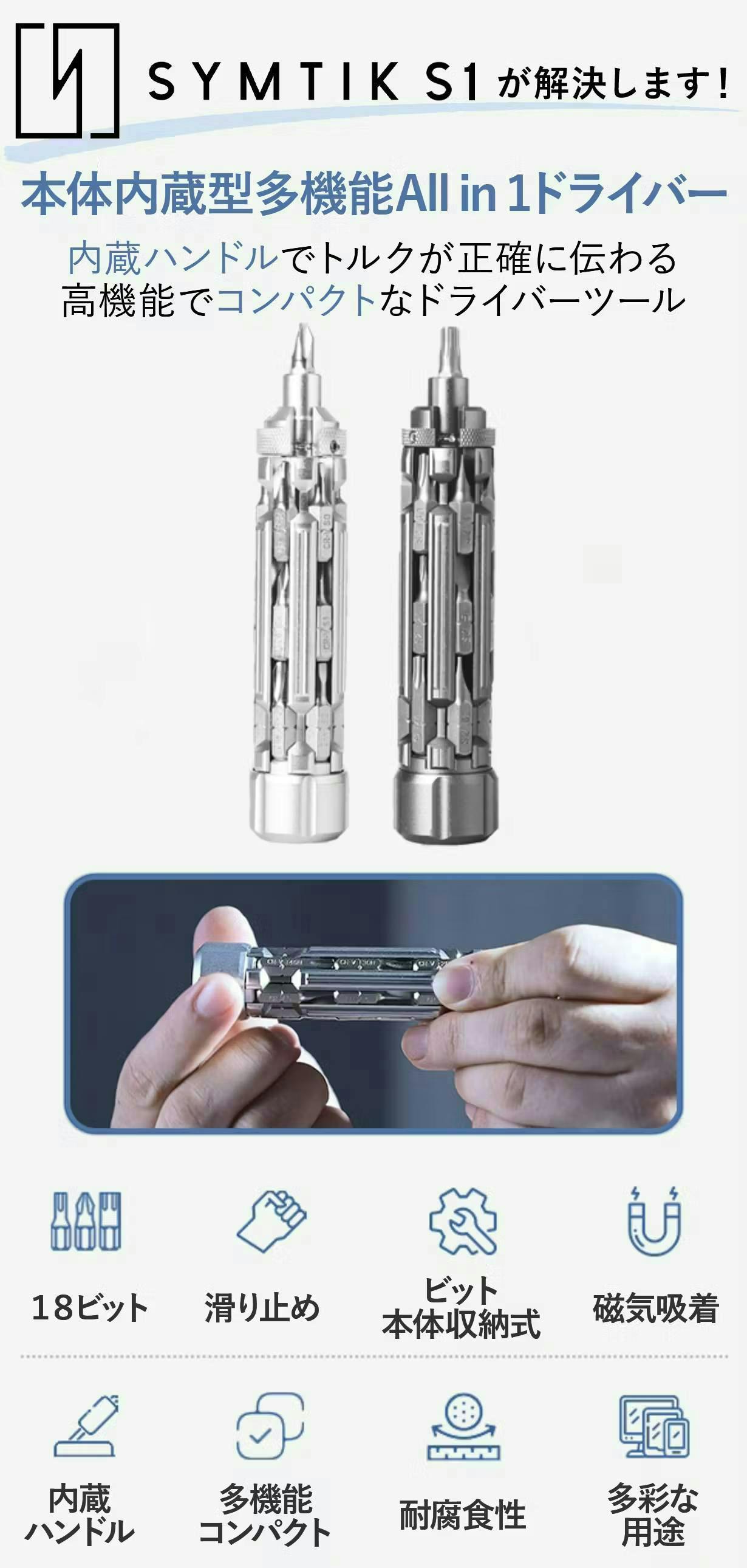 ガジェット好きの心をくすぐり、しかもハンドルやビット収納でコンパクトと利便性の高さも魅力的なSYMTIK S1を皆様にも体感してもらいたいと思い、本プロジェクトを立ち上げました。