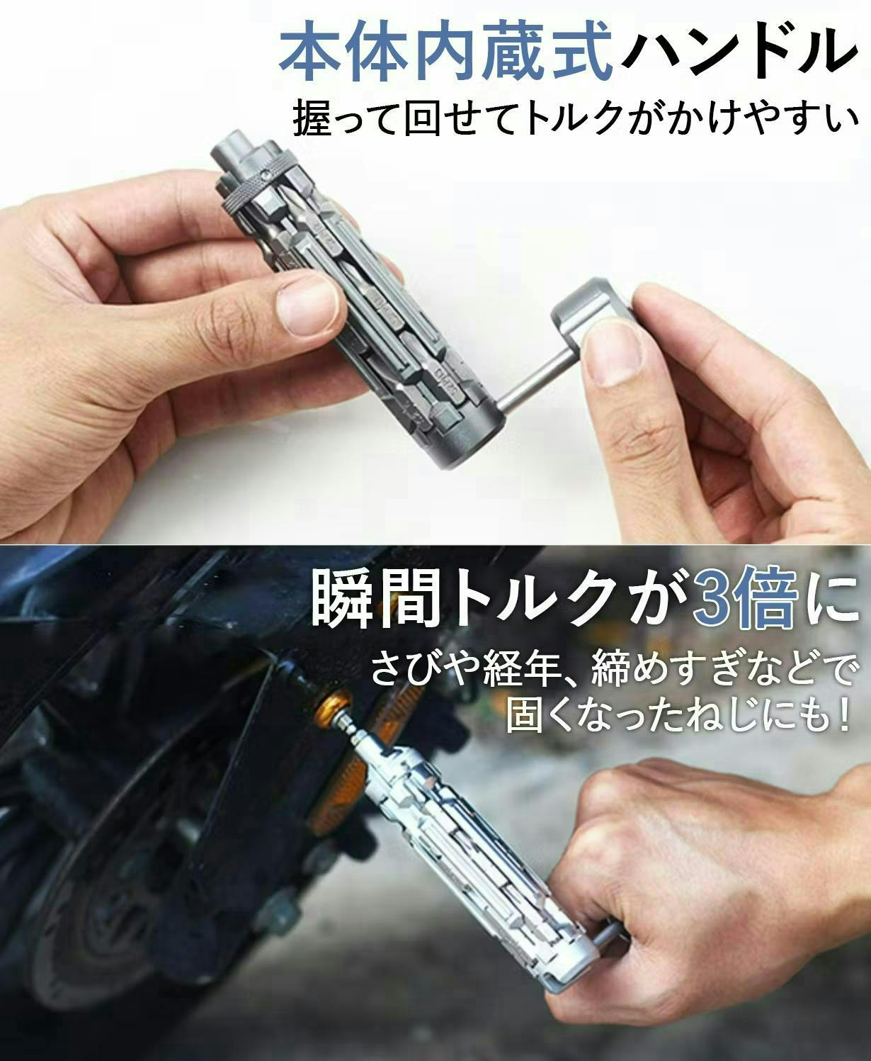 本体内部には内蔵式のハンドルがあり、引き出すだけで簡単にトルクをかけられます!