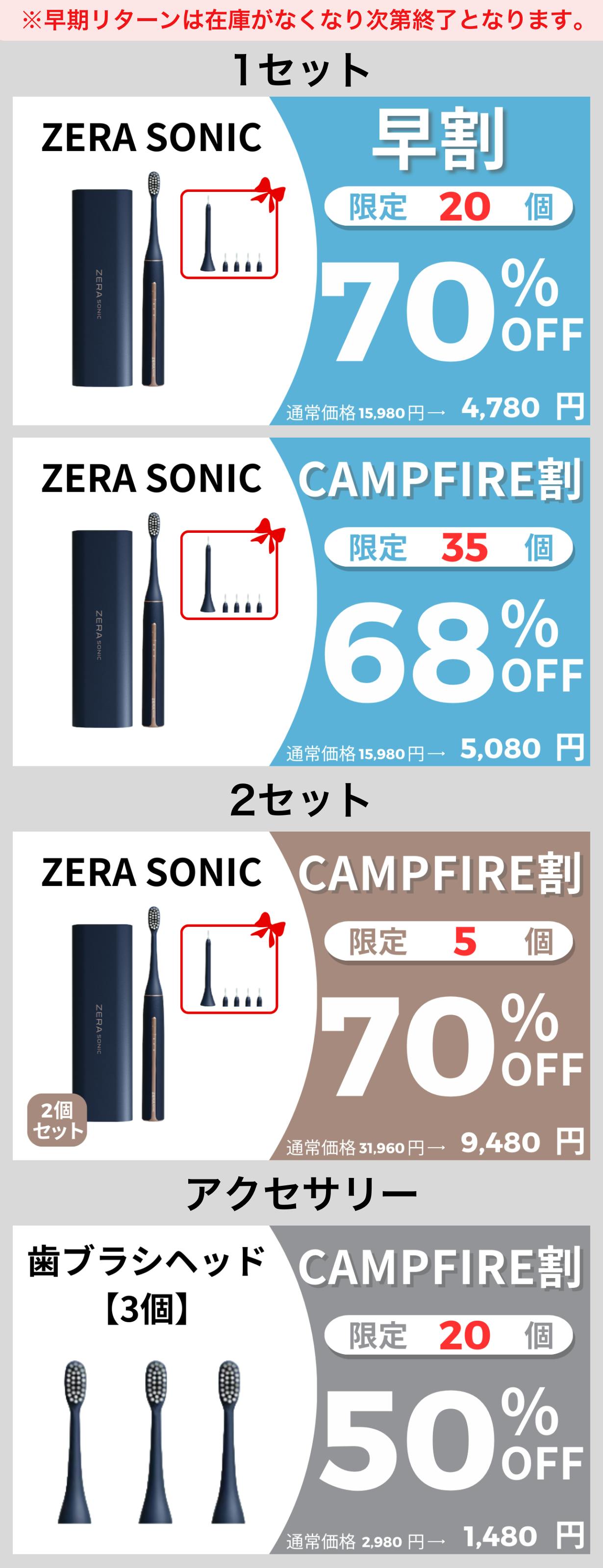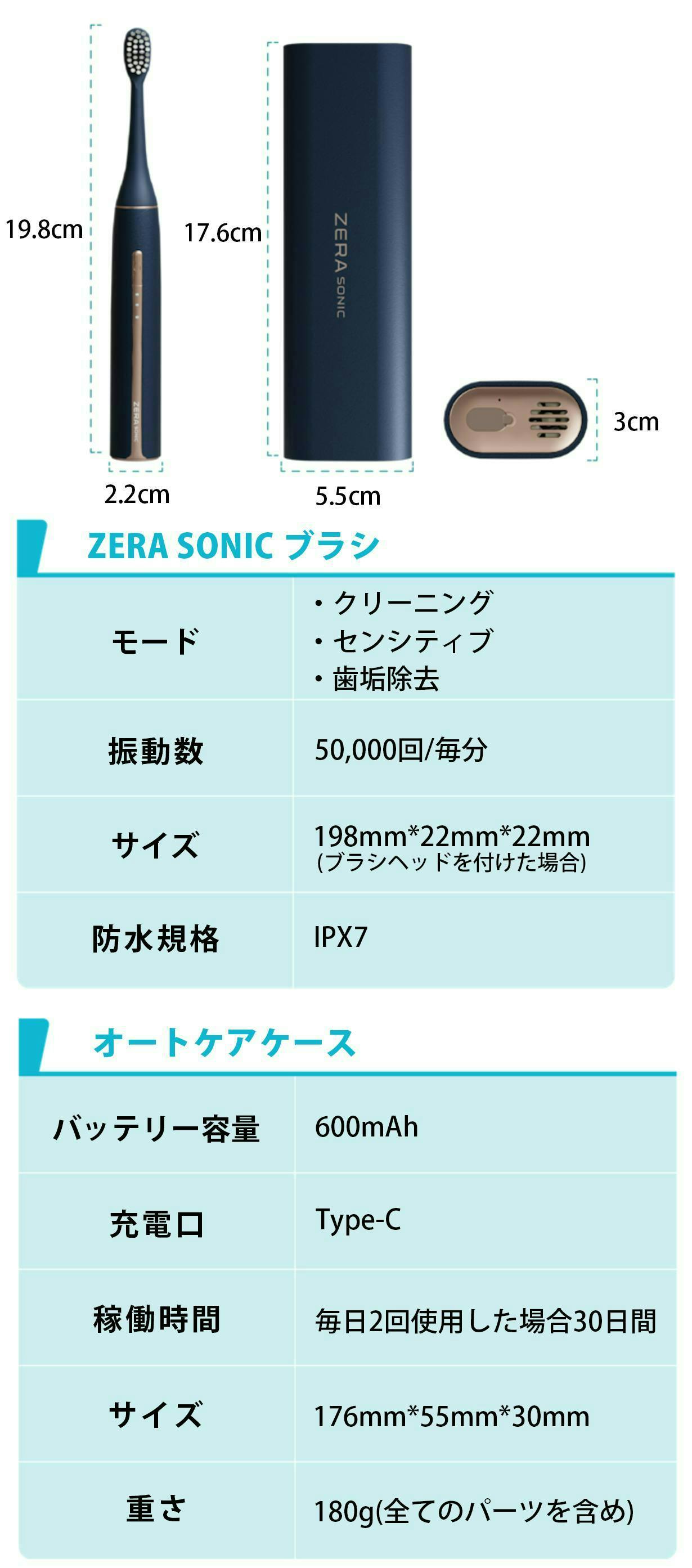 ZERA SONIC(ゼラソニック)は、歯間ブラシを備えた音波歯ブラシセットです。