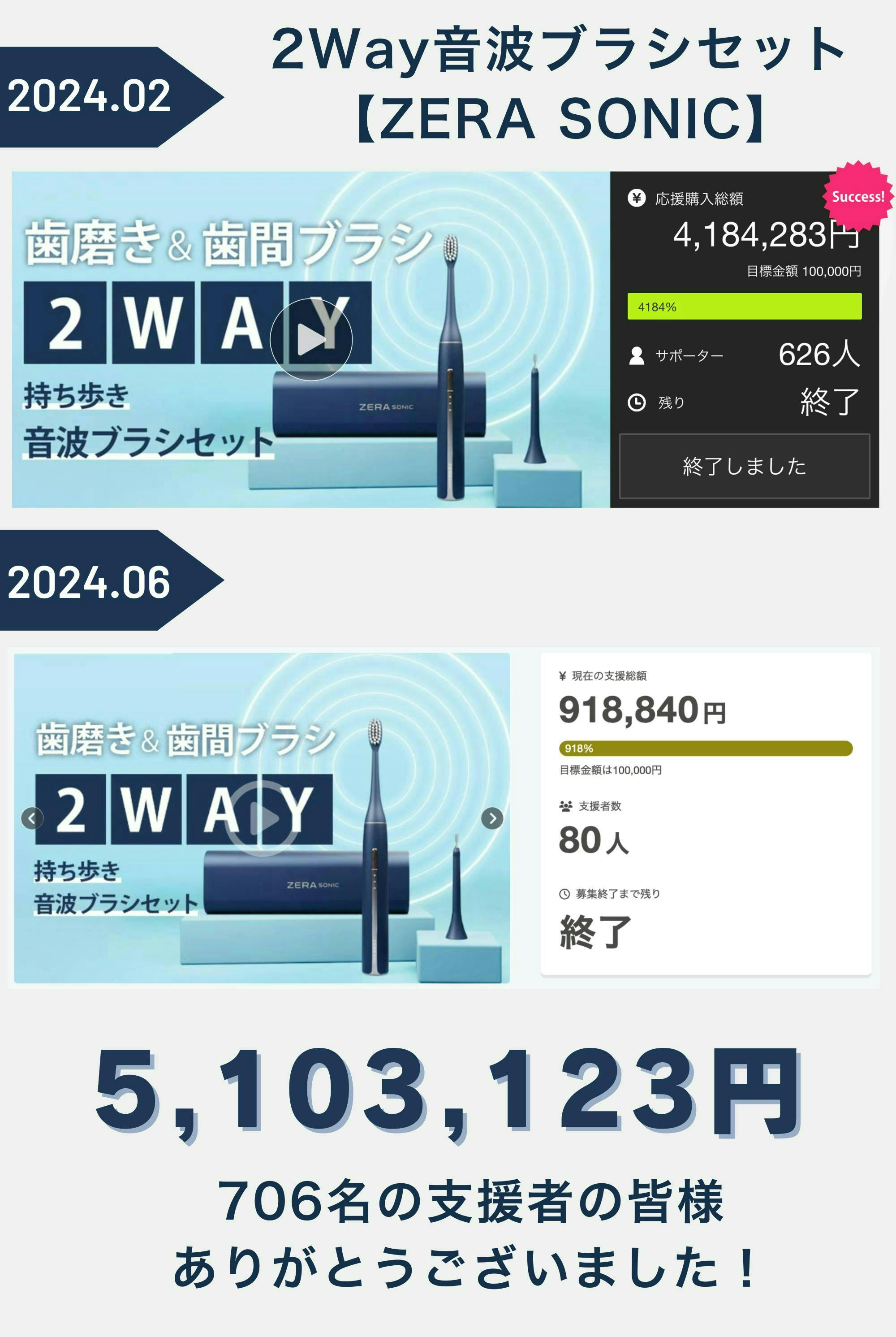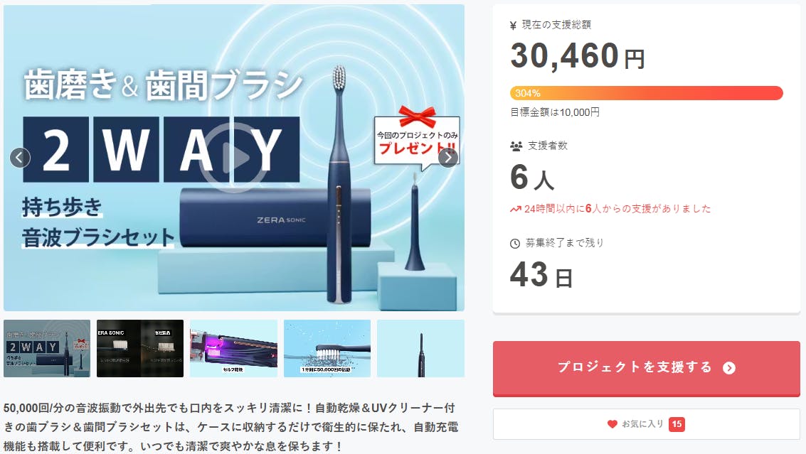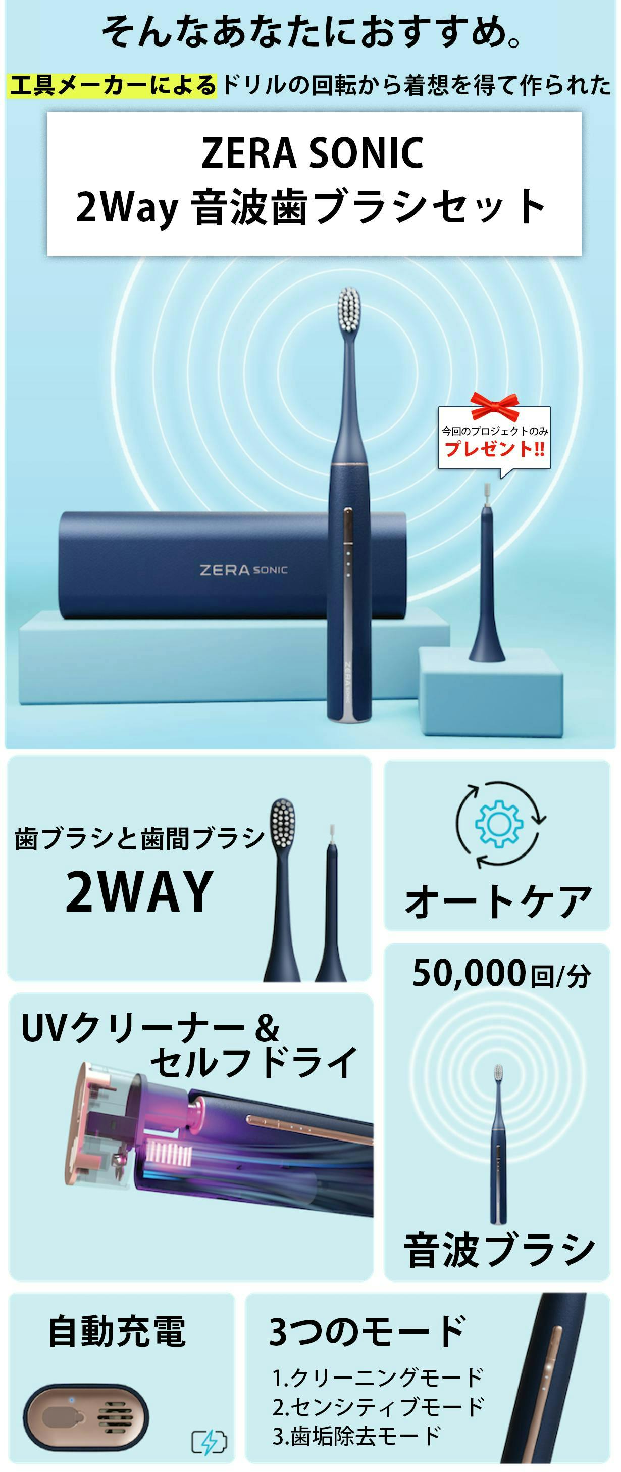 今回紹介のZERA SONICは、歯間ブラシと歯ブラシの音波ブラシセット。自動充電やオートケアケースなど目新い機能が満載でとても便利だと感じ今回プロジェクト起案に至りました。