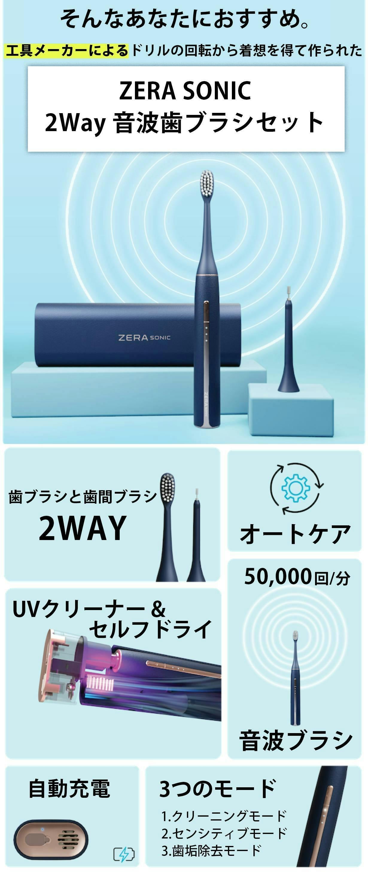 毎日の歯磨きが、ただの習慣で終わらず、環境にも配慮できたら素晴らしいと思いませんか? ZERA SONICは、その両方を実現するために設計された次世代のソニック歯ブラシです。高性能なクリーニング機能だけでなく、環境に優しい設計が特徴。