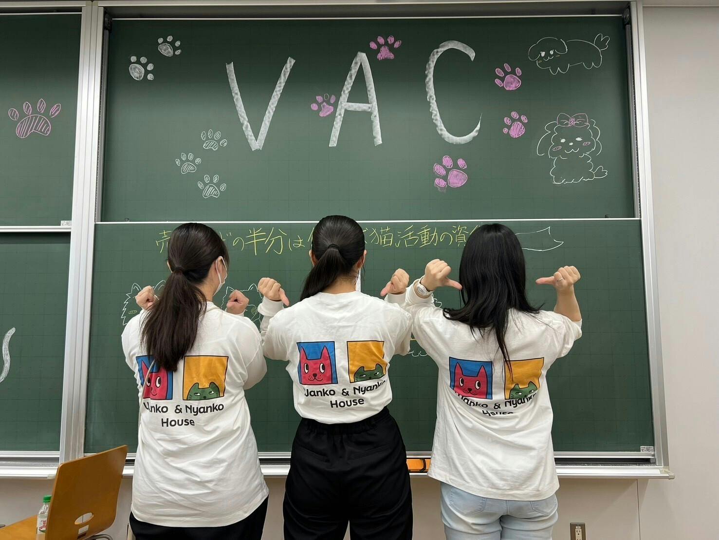 そんな時、2025年の春、獣医学科の同級生からの紹介でNPO法人Linktoの先生方とお会いすることになります。そこで「VACさんもぜひ」とお声をかけて頂き、現部長の獣医学科3年生宮武さんが中心となって、VACの活動として保護犬猫カフェ「つむぎ」の運営をする方針になりました。